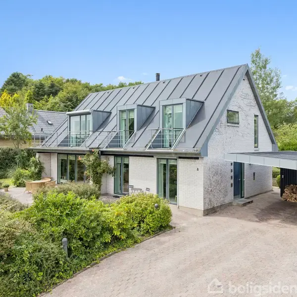 Velkommen til Bækbjerg 8 – en boligoplevelse ud over det sædvanlige. Her får I ikke blot en elegant villa - I får et hjem, hvor arkitektur, beliggenhed og kvalitet går op i en højere enhed. Den høje placering i forhold til villavejen sikrer både privatliv og en betagende panoramaudsigt over Flensborg Fjord, som kan nydes året rundt. Allerede ved ankomsten imponerer ejendommen med sit smukke paptag med lister, elegante karnapper og stilfulde zinkinddækninger, der sammen med de velplacerede altan