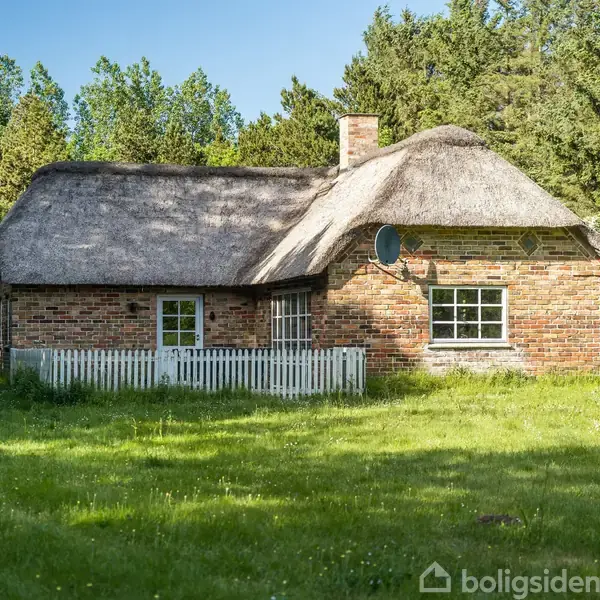 Åbent hus med tilmeldingskrav 3/2 - klik på billede - Hyggeligt vinkel-fritidshus beliggende på stor lukket grund omkranset af høje træer i populært sommerhusområde. Vester Husby er et af de smukkeste områder langs Vestkysten med sine fredede områder, uspoleret natur og skov, klitter og Vesterhavet med hvid sandstrand. Ikke langt herfra er Husby Klitplantage med sine gode gå- og cykelruter. Fritidshuset er opført i gammel vestjysk stil i munkesten med stråtag og hvide bondehusvinduer og døre i plast og træ/alu. Indrettet med entre – praktisk depotrum med plads til opbevaring - soveværelse med trægulv og indbygget skabe – 2 gode værelser med trægulv - lyst badeværelse med bruser og flisegulv - pænt køkken med hvidt inventar i åben forbindelse med dejlig opholdsstue med flot skifergulv, brændeovn, stort vindues-parti mod vest og udgang til god, ugenert og sydvestvendt terrasse. Flotte hvidmalede trælofter med synlige bjælker og vandskurede og malede vægge i alle rum. Godt inde-miljø, hvor det ældre præg og moderniseringen er fint forenet. Er tilmeldt udlejning.