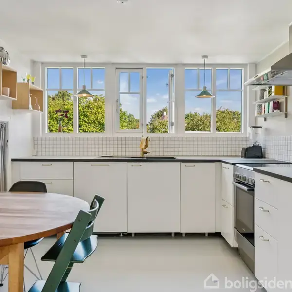 “Til-salg”-skiltet er sat ved en smuk patriciervilla fra 1911, der emmer af historie og gedigent håndværk. Her kan I overtage en ideel anpart med egen indgang, og I kan endda flytte direkte ind uden at løfte en finger, for boligen er løbende renoveret inde og ude. Det er oppe på første sal, at jeres kommende hjem venter – og det er i sandhed et hjem med plads til alle: Solisten, det unge par eller den lille børnefamilie vil finde alsidige muligheder i boligens 76 m2, der er spækket med klassisk