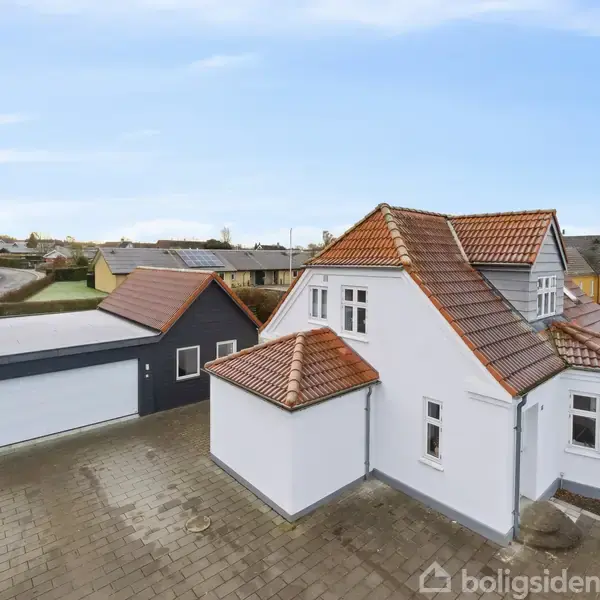 Her får du en flot og løbende renoveret villa på 138 m², hvor funktionalitet, lys og komfort går hånd i hånd. I 2006 blev køkken, bryggers, badeværelse og spisestue moderniseret, og siden er boligen blevet opdateret med renoveret opholdsstue i 2025 samt nyt laminatgulv på hele førstesalen i 2020 – magen til det i stuen, så der skabes en rød tråd gennem hjemmet.Den store flisebelagte indkørsel leder dig op til den dobbelte garage fra 2021 og det praktiske udhus med disponibelt rum og værksted fra