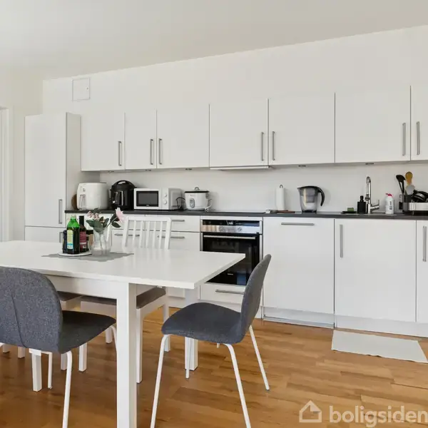Indbydende og lys! Lejligheden har en virkelig god udnyttelse og en god disponering af de rummelige rum.Midt i Bagsværd finder du denne lejlighed, der har en meget velindrettet planløsning. Her får du nemlig to store værelser, et badeværelse og et åbent opholdsrum med køkken og stue i ét.Lejligheden indeholder: Hjemmet indledes af en entré med indbygget skab. Til venstre finder du det veludførte badeværelse med metrofliser og separat bruseafsnit, mens I til højre har det indbydende opholdsmiljø