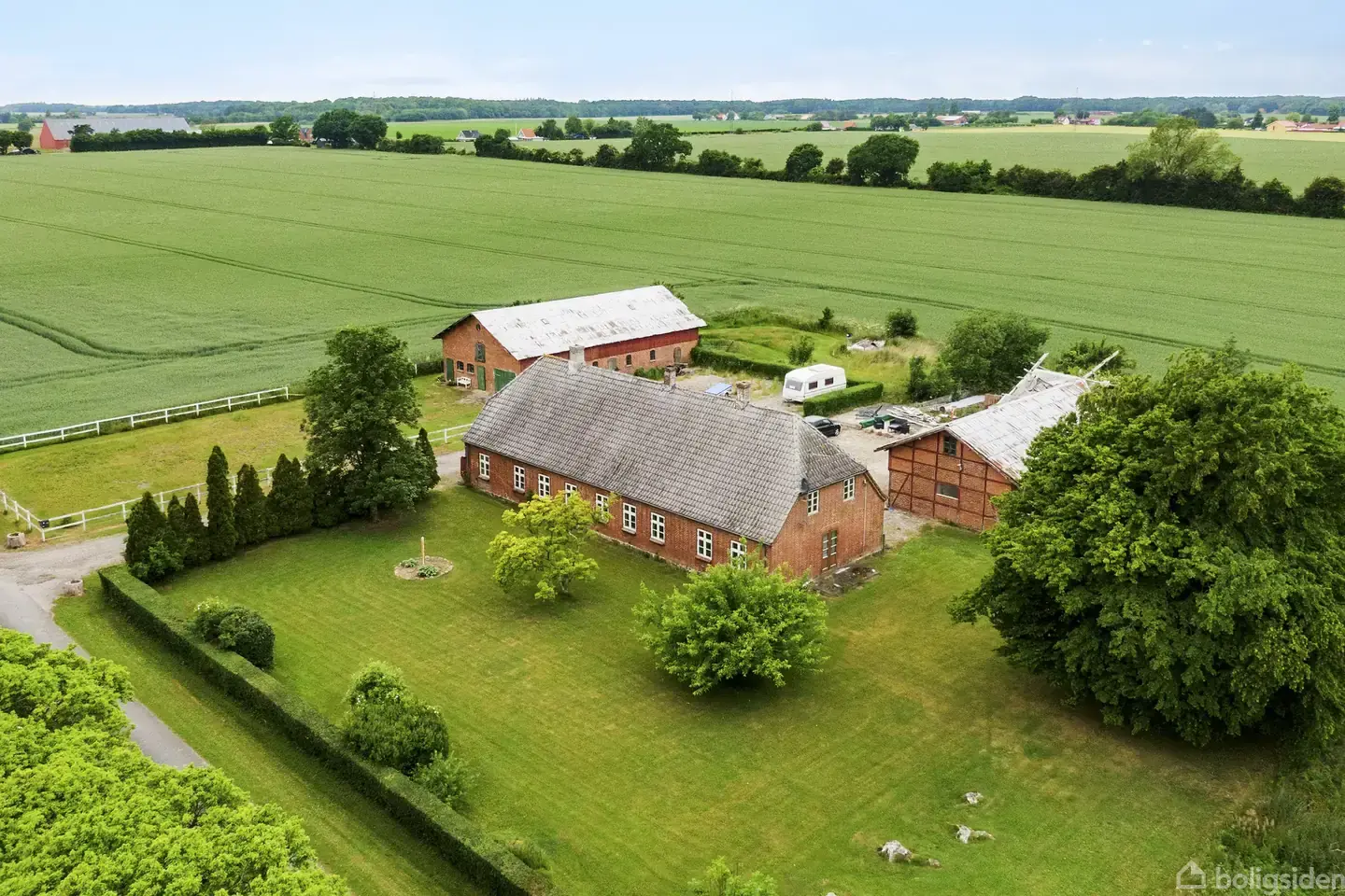 EJENDOMSTYPE:Nedlagt landbrugsejendom i røde mursten og med betontegl på taget og hovedsageligt energiruder. Ejendommen er oprindeligt fra 1883, og gårdmiljøet fra den tid er bevaret med en stor gårdsplads og et par udbygninger. Her er et samlet boligareal på 210 kvm i et plan.Beboelsen er stort set gennem renoveret, hvilket vil sige, at gulve er fjernet, der er isoleret under disse samt lavet gulvvarme i stort set alle rum.Ejendommen fremstår i god stand, med gode vinduer og døre - og standsmæs