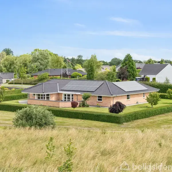 Velkommen til denne indbydende arkitekttegnede fuldmurede villa på 215 m² – det ideelle hjem for børnefamilien, hvor plads, funktionalitet og komfort går op i en højere enhed. Opført i 2007 og indrettet med tanke på familielivet, byder boligen på en gennemtænkt planløsning med en separat børneafdeling i den ene ende og en rolig forældreafdeling i den anden. Her er der rig mulighed for både samvær og privatliv.Hjertet i hjemmet er den store, lyse stue, som er forbundet med køkken og spisestue i e