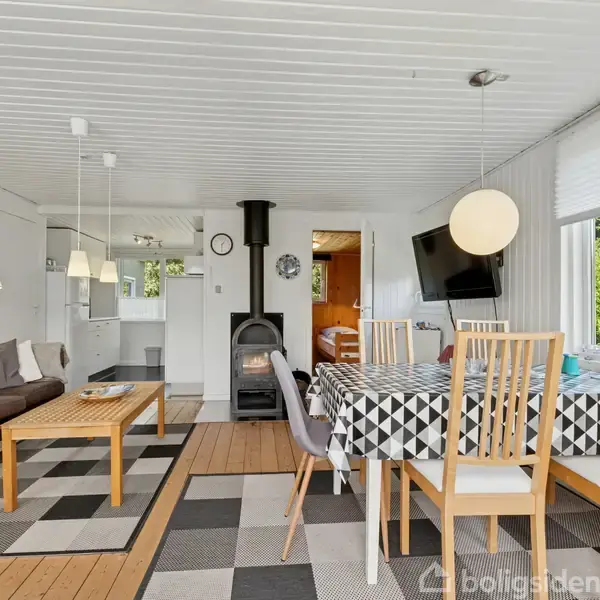 Fritidshus på 63 m2 i Øster Hurup – på lejet grund tæt ved strand og byliv Dette charmerende fritidshus er løbende renoveret og fremstår i velholdt stand – perfekt til familien eller parret, der ønsker en base tæt på havet og hyggelige omgivelser. Med kun ca. 300 meter til nogle af Danmarks bedste og mest børnevenlige badestrande er rammerne sat for ægte feriestemning, mens Øster Hurups livlige bymiljø med havn, restauranter, aktiviteter og indkøbsmuligheder ligger få minutter væk. Allerede ved