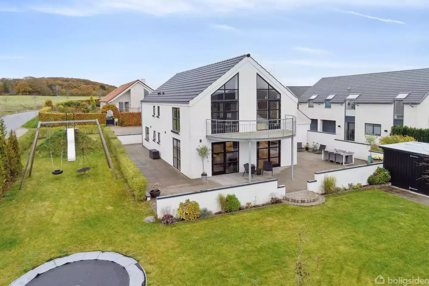 Nyere og moderne villa med plads til hele familien og flot udsigt til skovDrømmer du om en rummelig, moderne bolig med naturskøn udsigt og kort afstand til byens faciliteter? Så er denne villa lige noget for dig!Tilmed får du en villa, der rummer plads til den store familie, med hele 7 værelser, 2 badeværelser og dejlige opholdsrum i hverdagen. Villaen er højt beliggende og har skøn udsigt over skovområde samt kig til Gl. Estrup Slot, der ses i det fjerne. En skøn udsigt hele året, hvor man virk