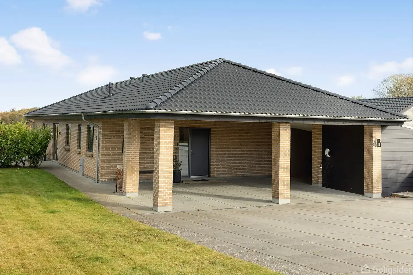 På Bakkevej 4B i Højslev finder du denne flotte og velindrettede villa fra 2020 på 154 m² bolig, som kombinerer moderne kvalitet, funktionalitet og naturskøn beliggenhed. Her får du en indflytningsklar bolig med udsigt over åbne marker og grønne omgivelser – perfekt til familien, der ønsker både ro og nem hverdag tæt på skole, daginstitutioner og indkøb. Boligen er opført i lyse materialer med fokus på tidløst design og praktiske løsninger. Her er gulvvarme i hele huset, og opvarmningen sker med naturgas. Den rummelige planløsning byder på et lyst og indbydende køkken/alrum, hvor der er god plads til samvær omkring madlavningen, mens stuen ligger i åben forbindelse og har udgang til en skøn terrasse med udsigt til naturen. Huset rummer fire gode værelser, så der er plads til både børn, kontor og gæster. Forældreafdelingen har eget badeværelse, og der er yderligere et badeværelse i børneafdelingen – begge i moderne stil med lyse fliser og bruseniche. Bryggerset ligger praktisk ved indgangen og fungerer som et naturligt bindeled mellem hus og carport. Udenfor får du en overskuelig have med flere terrasser, hvor du kan nyde solen og udsigten. Den integrerede carport på 49 m² giver både plads til bilerne og et godt redskabsrum. Kort sagt: En moderne og gennemtænkt familievilla i et attraktivt og børnevenligt område – lige til at flytte ind i.