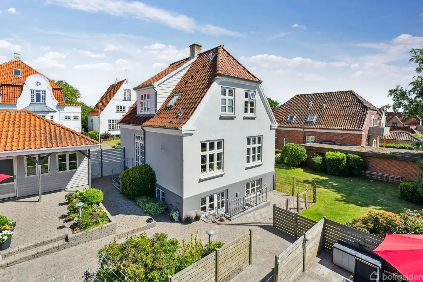 Åbent hus med tilmeldingskrav 2/2 - klik på billede - Flot og velholdt klassisk villa fra 1930’erne opført i en smuk og tidstypisk byggestil og indrettet i tre plan. Villaen byder på gode, lyse rum med en fin loftshøjde og en planløsning, der gør boligen både funktionel og meget anvendelig for familien. Stueplan rummer to indbydende stuer en-suite med et dejligt lysindfald samt et godt og rummeligt spisekøkken med direkte udgang til den hyggelige gårdhave og terrasseområderne. Her skabes en naturlig sammenhæng mellem inde- og udeliv. Boligarealet udgør 142 m2 og suppleres af en særdeles anvendelig kælder på 74 m2 i boligstandard og med god loftshøjde. Kælderen indeholder to gode disponible rum, der er ideelle som teenage- eller gæsteafdeling, lyst badeværelse med flotte fliser og gulvvarme samt et rummeligt, pænt bryggers med god plads til vaskemaskine og opbevaring. 1. sal fordeler sig med repos, to lyse værelser – herunder forældreafdeling med soveværelse og fire faste skabe – samt et fint badeværelse med bruser og gulvvarme. Udvendigt byder ejendommen på carport, et praktisk udhus/redskabsrum og et drivhus. Haven fremstår særdeles hyggelig med flere små, ugenerede kroge, der giver gode muligheder for både sol og læ – perfekte rammer for afslapning og udeliv. En yderst anvendelig og charmerende villa med sjæl og atmosfære, beliggende tæt på kultur- og butikslivet i Assens. Kontakt EDC Assens på telefon 64713150 allerede i dag for en fremvisning.