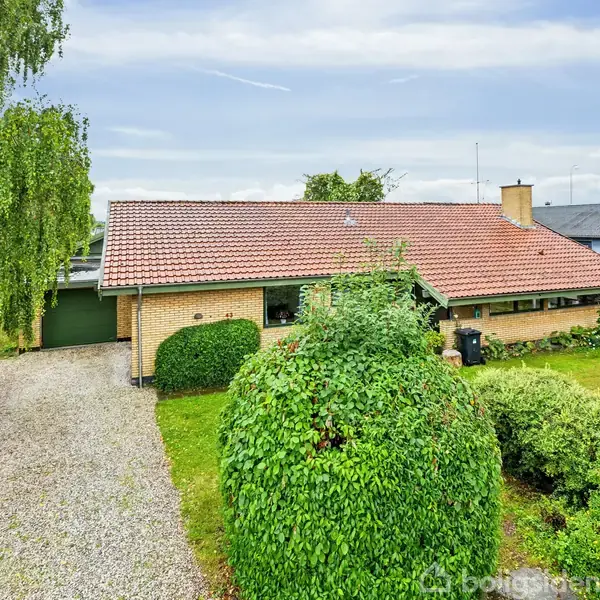 Blandet bolig/erhverv. Værksted/garage på 247 m² Med sin kombination af bolig og erhvervsmulighed skiller denne ejendom sig ud med 173 m² bolig af Müresjø-kvalitet samt en muret garage på 36 m² og en erhvervsdel på hele 247 m². Beliggende i et roligt, men alligevel centralt område, giver det store grundstykke på 1.346 m² mulighed for mange slags udnyttelse – både privat og professionelt. Tidligere har ejendommen huset en digital trykkerivirksomhed, men rummenes fleksible karakter åbner op for en