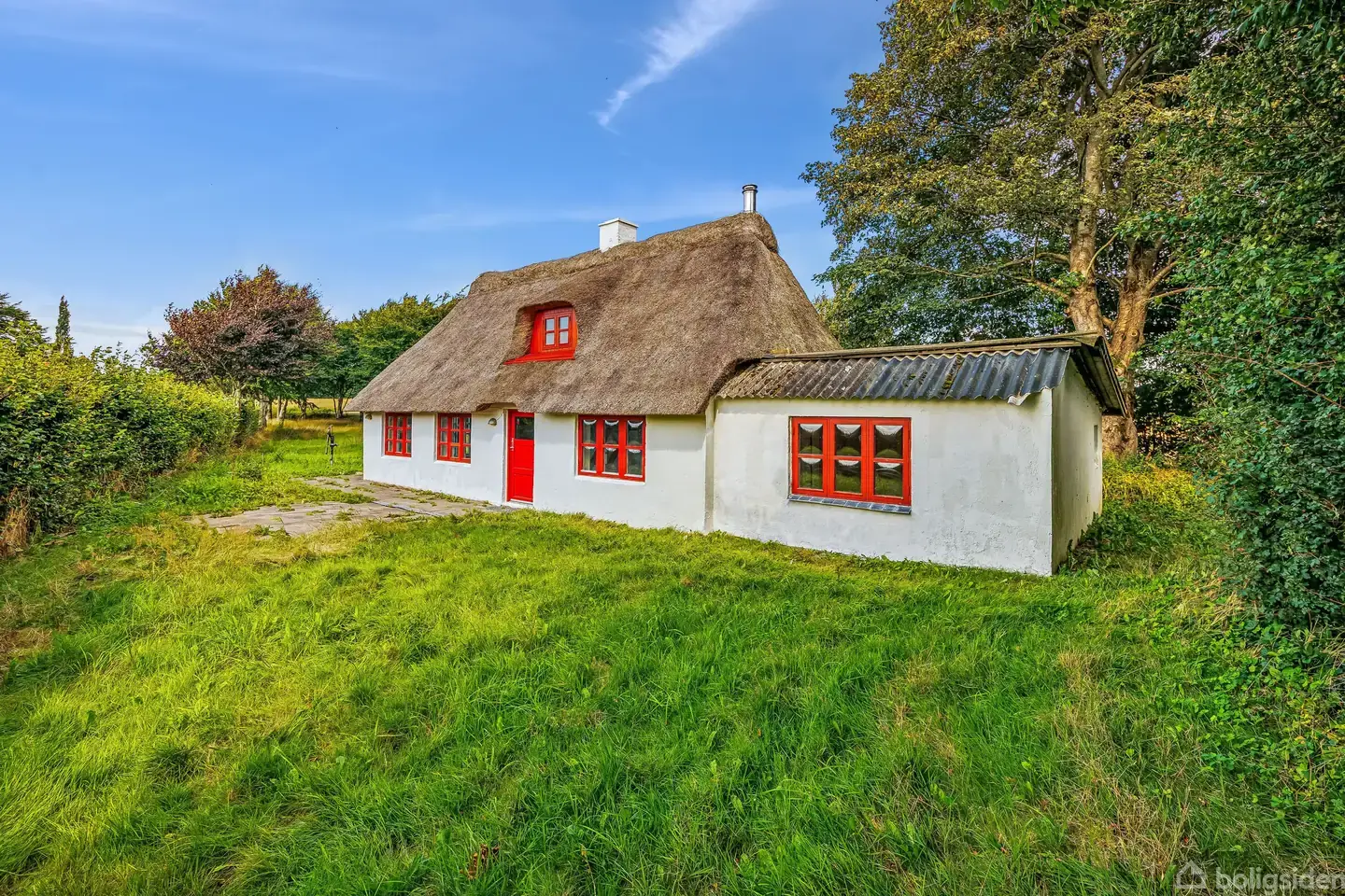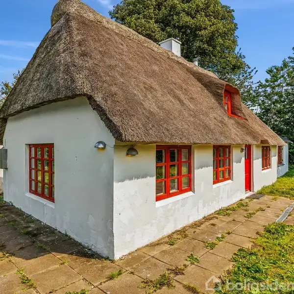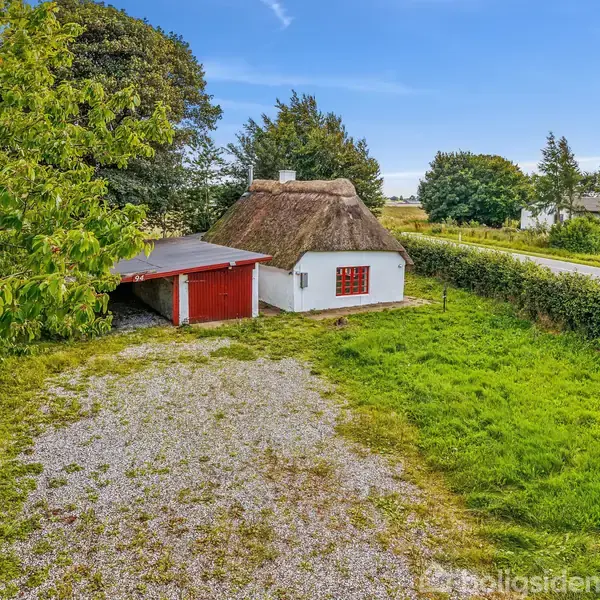 I mange år har den charmerende ejendom haft hjemme i de grønne omgivelser, der breder sig ud fra adressen. Naturen hersker i nærområdet, og så bosætter du dig lige uden for hverdagens tilbud, mens Vejles hyggelige byliv er at finde knap 20 minutter fra hoveddøren. En rolig vej med træer på begge sider leder op til huset. Her fanges blikket af det fine stråtag, og omkring boligen folder en 1.645 kvm stor matrikel sig ud. Man får altså straks fornemmelsen af, at naturen vokser ind på grunden, og