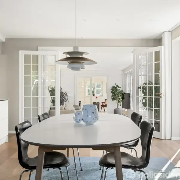 Midt blandt rækkehusene gemmer sig en sjælden perle – et tidligere stationshus med en stemning og udstråling, der straks skiller sig ud. Med sin karakteristiske facade, fine tilbygning og varme atmosfære byder dette hjem på noget ganske særligt for den familie, der drømmer om charme, personlighed og masser af naturligt lys. Man træder ind i entréen, og allerede her fornemmer man husets sjæl. På højre hånd åbner det hyggelige køkken-alrum sig – hjertet i hjemmet, hvor der er god plads til både h