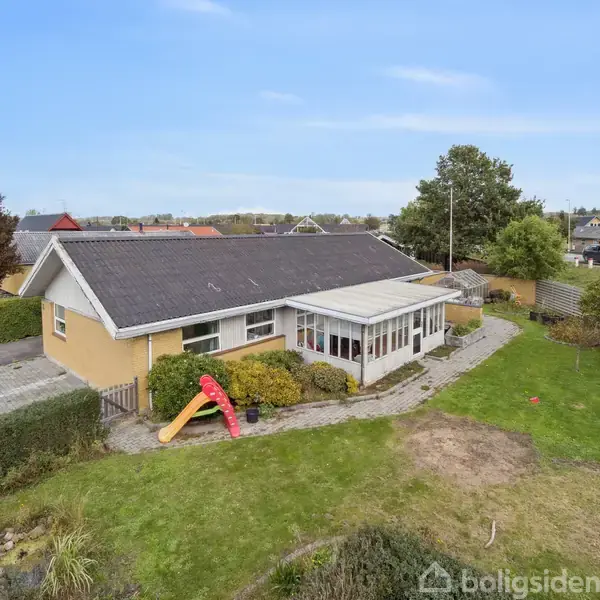 På Banevangen 11 finder du en indbydende og rummelig etplansvilla, der byder på en tryg og funktionel ramme om familielivet. Boligen har en veldisponeret planløsning med fire gode værelser, et badeværelse med bruseniche, gæstetoilet samt et praktisk bryggers med direkte adgang udefra. Husets hjerte er det lyse køkken-alrum i åben forbindelse med stuen, hvor store vinduespartier skaber et dejligt lysindfald og en behagelig atmosfære. Herfra er der udgang til den store udestue – et skønt ekstra op
