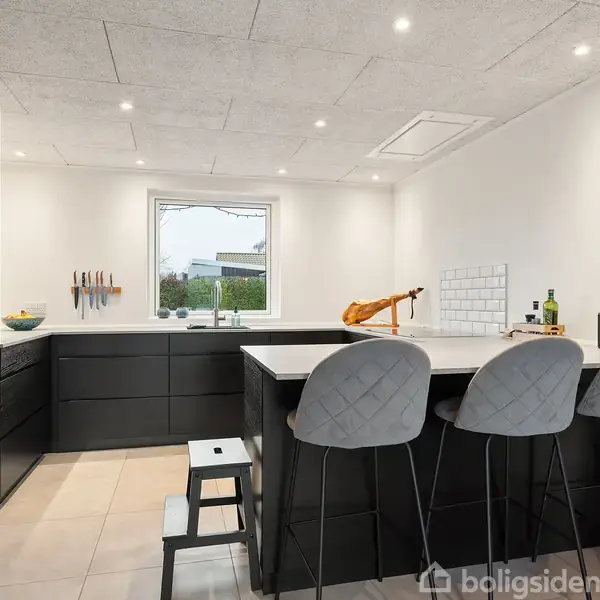 Du bliver her budt indenfor i en renoveret og indflytningsklar murstensvilla – en funktionel 1-plans ramme om hverdagen i det trygge Ølsted. Allerede ved ankomsten mærker du de ordnede forhold og den rolige atmosfære. Facaden står velholdt og indbydende mod vejen, med grønne omgivelser og gode opholdsarealer, som giver et imødekommende førstehåndsindtryk. Fra bryggerset træder du ind i et rummeligt køkken alrum, der er åbent forbundet med stuen, så opholdszonen fungerer som ét samlet rum. De ge