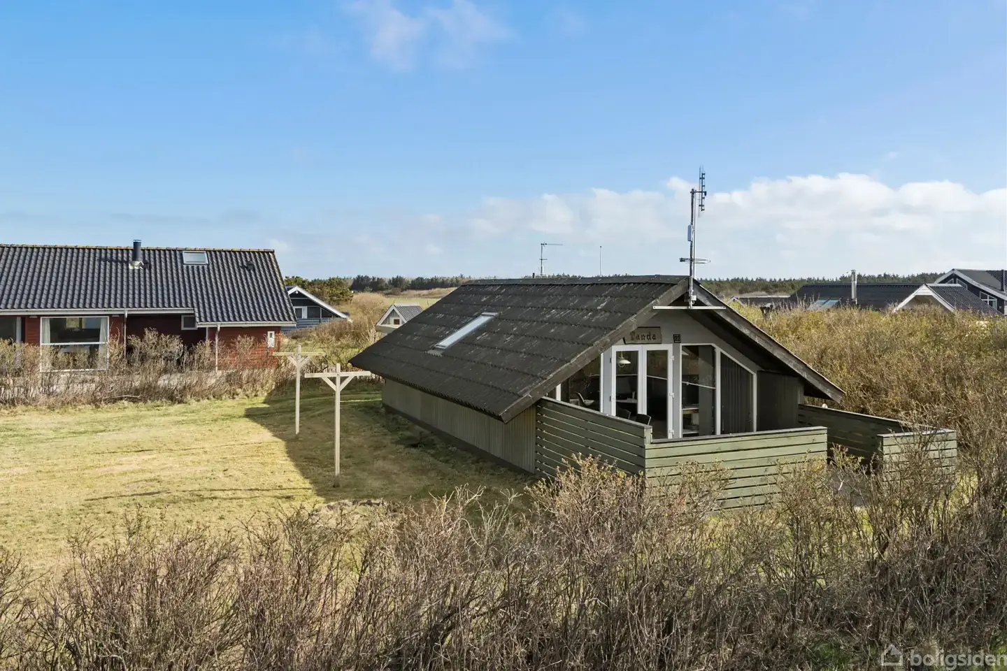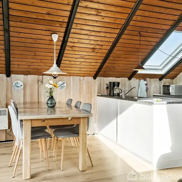 Åbent hus med tilmeldingskrav 4/2 - klik på billede - De fleste er enige om, at pandaen hører til de mest charmerende dyr, og netop derfor virker det særligt passende, at dette hyggelige fritidshus i Vejlby netop har fået navnet “Panda”. Fritidshuset er ikke tilmeldt udlejning, så I selv kan nyde det hele fra dag ét, og ovenikøbet får I det charmerende fristed til en god pris. Det er ikke fritidshuset alene, der gør det. Også beliggenheden er essensen af, hvad der gør Vejlby til et populært sommerhusområde. 800 meter har I til stranden, og cirka halvvejs passerer I købmanden, så der nemt kan samles is til fryseren og grillpølser til aftensmaden. Området er et godt udgangspunkt for udflugter, og samtidig er det rart med en feriebase, der er perfekt til afslapning og langsomme dage. Grundlæggende er her tale om et klassisk fritidshus fra 1977. De salviegrønne træfacader passer godt til omgivelserne, og huset ligger på en 734 m² stor grund, som indrammes af tæt beplantning. I får en stor, sydvendt terrasse med læhegn, og der er også opført en carport med indbygget skur til opbevaring af grillen og havemøblerne uden for sæsonen. Med 51 m² har fritidshuset en ganske overskuelig størrelse, men pladsen er udnyttet til fulde. Huset er indrettet med to værelser samt et pænt badeværelse, mens køkken-alrummet og stuen indgår i en samlet opholdsafdeling. Køkkenet er opdateret og udført med grålige elementer, og fra stuen er der udgang til den sydvendte terrasse, så I nemt kan rykke udenfor, når vejret er til det. Særligt opholdsafdelingen har glæde af et godt lysindfald med et par ovenlysvinduer til at supplere vinduesgavlen, og desuden er der loft til kip i hele fritidshuset. Derudover varmes sommerhuset effektivt op med en luft-luft varmepumpe. Vejlby er et skønt og populært ferieområde, hvor der er plads til at koble af og nyde de naturskønne omgivelser ved vandet. Om sommeren kan strandture veksles til dejlige cykelture rundt i det smukke, bakkede landskab, men området er bestemt et besøg værd på alle årstider. Naturen ved Vesterhavet er på samme tid smuk og barsk, så det er fuldt forståeligt, at man netop her finder et meget attraktivt sommerhusområde. Vesterhavet og den brede sandstrand er selvfølgelig højdepunkterne, men listen over aktiviteter er meget omfattende. Det er muligt at opleve det unikke klitlandskab fra hesteryg, mens Harboøre Fritidscenter tilbyder alt fra skydning og skaterbane til motionscenter. Ligeledes er der gode handlemuligheder i Harboøre, mens der i Vrist ligger både en købmand og en café, som hver især har åbent i sommerhalvåret. Vil man opleve lidt ekstra, ligger området kun et kvarters kørsel fra Lemvig og Thyborøn, som begge har hyggelige havnemiljøer ved Limfjorden. Det er også muligt at lade bilen stå og spadsere over til Victoria Street Station, hvor de gamle VLTJ-lokomotiver snart bliver erstattet af støjfri, moderne batteritog. Kontakt EDC Lemvig på 96 63 40 00 for at høre mere ved en fremvisning.