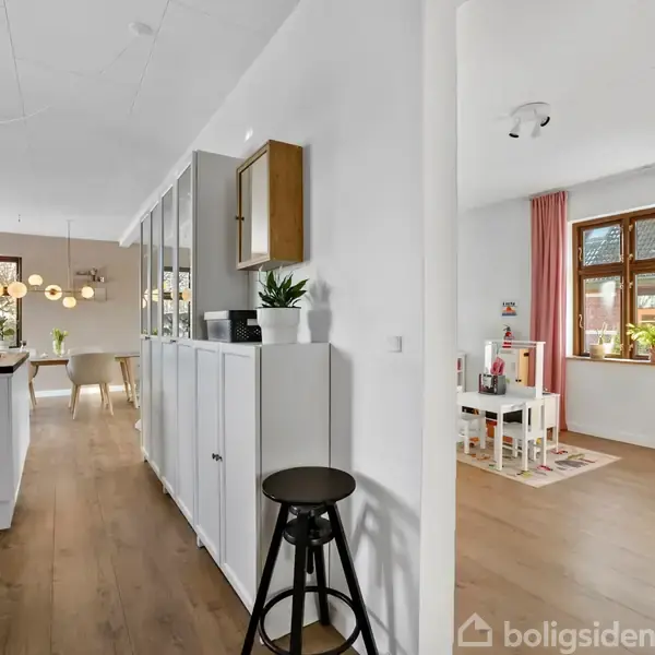 Åbent hus med tilmeldingskrav 8/2 - klik på billede - Velkommen til Barfredsvej 5 - en stemningsfuld villa fra 1908, beliggende på en af Hedehusenes mest attraktive adresser. Her får du 120 veludnyttede kvadratmeter fordelt på to plan, kombineret med en sjælden dobbeltgrund på hele 1.112 m², hvilket er yderst usædvanligt i området. Huset kan tilgås via den originale indgang til stueplan, eller via det nyrenoverede bryggers hvor der er rig plads til opbevaring af fod- og overtøj, hvorfra der er tilgang til husets køkken. Stueplan byder på et indbydende køkken/alrum og god spiseplads samt en stor, lys opholdsstue med plads til både hverdag og gæster. Køkkenalrummet blev totalistandsat i 2022 hvor sælger har etableret gulvvarme og lagt gennemgående laminat longboard plankegulve i hele stueplan, som sikrer høj komfort året rundt. Yderligere er loftet blevet udskiftet med rockfon akustiklofter, som sikrer behagelig akustik, også når hjemmet er fyldt med gæster. Fra køkken/alrummet er der isat havedør med dobbelt glas som både giver et smukt udsyn ud over den skønne have, men også giver en direkte adgang til haven og muligheden for at forene ude og inde liv. Hvis du ønsker et soveværelse i stueplan kan dette nemt etableres (se den alternative plantegning).Det originale badeværelse er bevaret med terrazzogulv og bruseniche og tilfører boligen masser af karakter. Førstesalen blev i 2023 totalombygget og renoveret, så de fritliggende bjælker i dag virkelig kommer til deres ret. Under renoveringen blev taget efterisoleret, og alle døre og vinduer udskiftet med ventilationsvinduer, for optimalt indeklima. Samme gulve og gulvvarme går igen på denne etage, samt rockfon akustikloft. Førstesalen er indrettet med to gode soveværelser samt repos, der i dag anvendes som hjemmekontor. Fra reposen samt fra det ene værelse er der udgang til en stor overdækket vestvendt terrasse hvor særligt solnedgangen kan nydes året rundt. Under renovering af huset har sælger haft et særligt fokus på akustik og god lyd, alle vægge på førstesalen er derfor opført som lydisolerende, og der blev lagt et ekstra isoleringslag ned til stueetagen, da gulvvarmen blev lagt på førstesalen. Sælger har lagt stor energi i haven den er derfor indrettet med flere hyggekroge og god plads til både leg og afslapning. På havens solrigeste plads er anlagt stor fliseterrasse, hvor der også findes drivhus samt bærbuske og æbletræ. I forlængelse af den store indkørsel er en stor garage på 43 m² med ekstra loftshøjde. Barfredsvej er kendt som en af de mest attraktive og rolige adresser i Hedehusene med kort afstand til skole, indkøb og station. Samtidig har du nem adgang til Hedeland Naturpark med stier, bakker og friluftsliv samt nærliggende sportsanlæg og fritidsfaciliteter. Her bor du centralt, men ugeneret - ideelt for både børnefamilier og dem, der ønsker hurtig adgang til København.