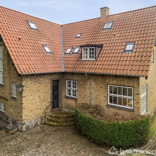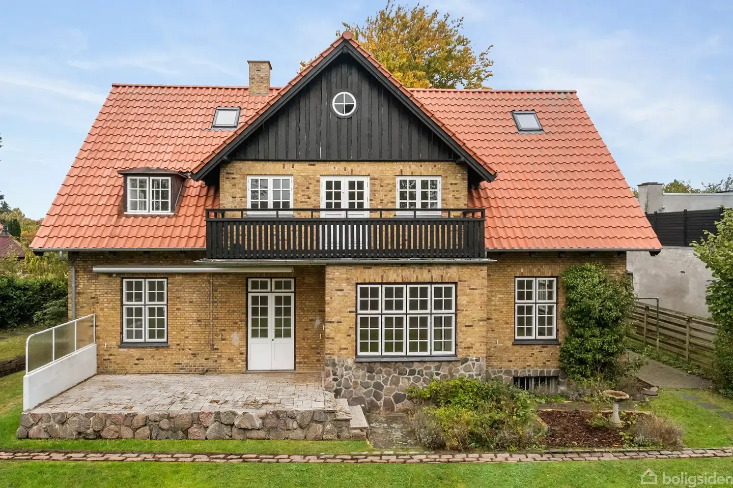 Imponerende stor villa med plads til hele familien - 450 etagemeter. Villa på 306 m² fra 1937 med en privat, let kuperet grund på 1.214 m² og et massivt udtryk i gul mursten og rødt tegltag. Ejendommen rummer i alt 9 rum og 2 badeværelser med toilet samt separat gæstetoilet fordelt på flere plan. Ejendommen møder dig med en brostensbelagt indkørsel, port og dobbeltgarage—et indbydende førstehåndsindtryk med plads til bil og gæster.Indretningen er rummelig og veldisponeret omkring en central tr