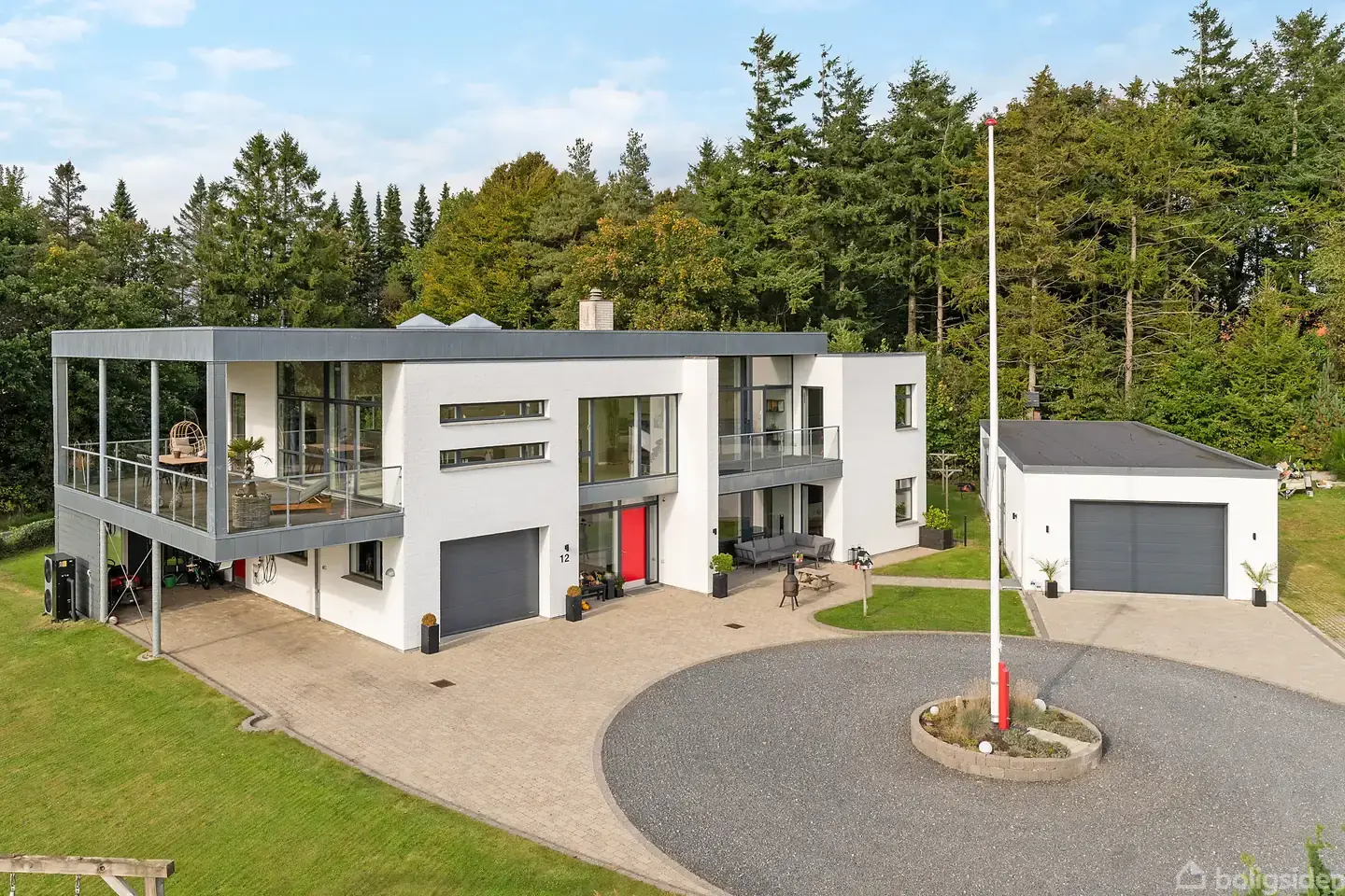 Velkommen til Bauneparken 12 – en betagende villa, der får kæben til at falde og hjertet til at banke hurtigere.En arkitektonisk fuldmuret villa, der fra første øjekast sender et klart signal: her bor man uden kompromisser. De skarpe linjer, de store glaspartier og den stilrene facade sætter scenen for et hjem, hvor æstetik og funktionalitet går hånd i hånd - og udsigten - ja den taler helt for sig selv.Indenfor fortsætter indtrykket. Husets hjerte er det store køkken/alrum med Multiform-køkken