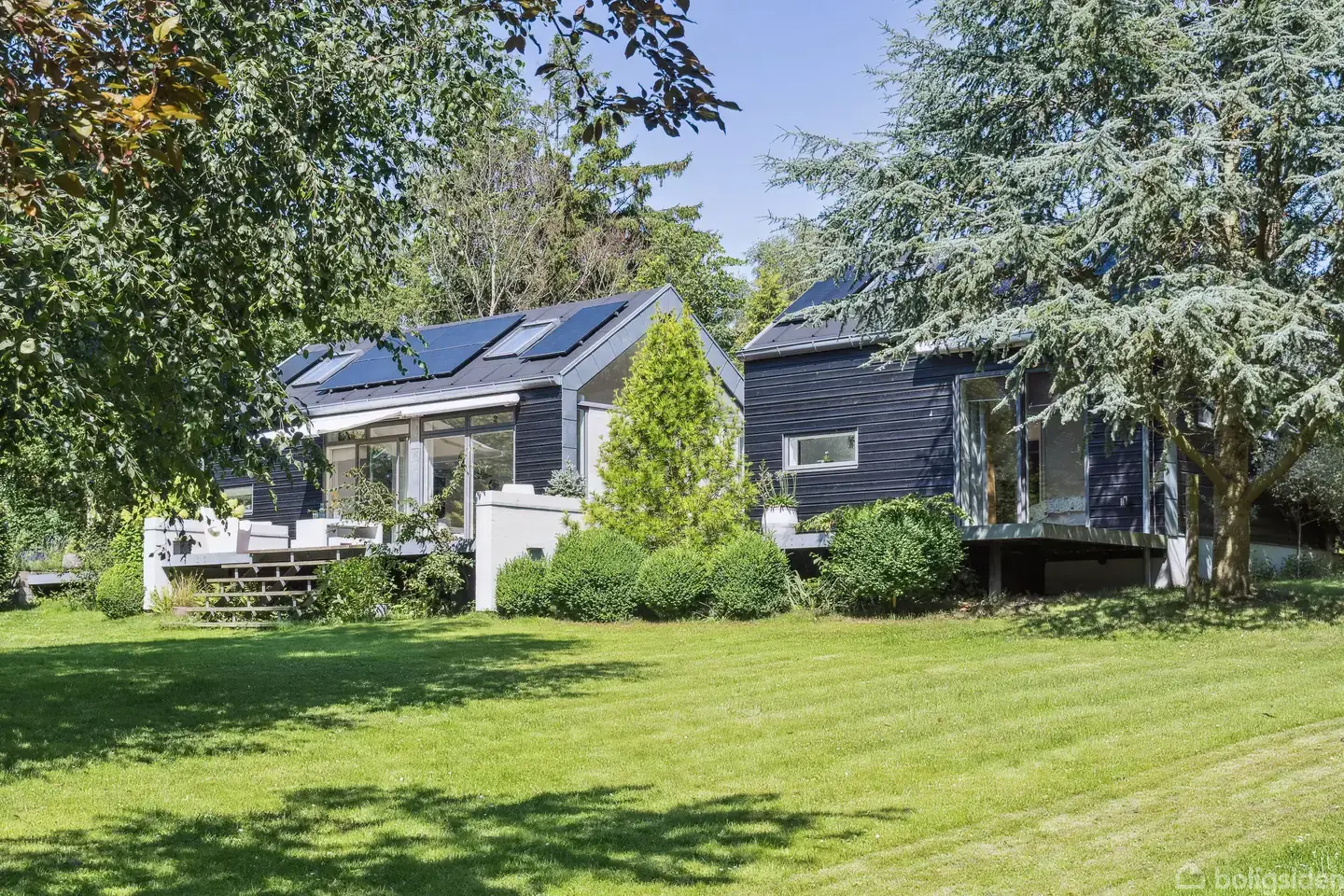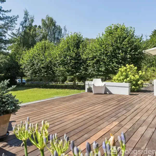 På en fredelig og frodig grund på over 2.700 m² i naturskønne Vejby ligger dette smukke sommerhus, der forener moderne komfort med en rolig og afslappet atmosfære. Her får du hele 160 veldisponerede kvadratmeter, hvor rummelighed og lysindfald går hånd i hånd. Husets hjerte er det imponerende køkken-alrum og stue i ét, hvor loftet strækker sig til kip, og de mange vinduespartier inviterer naturen indenfor. Fra alrummet er der direkte udgang til den store, solrige træterrasse mod sydvest, som e