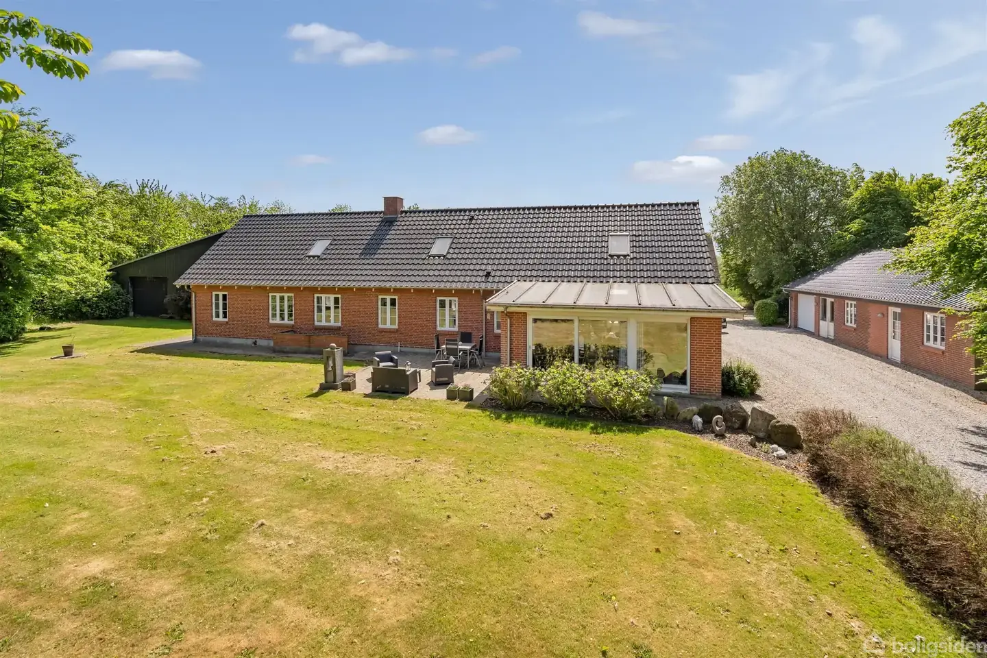 Jorden fordeler sig med 21,2 ha agerjord og 3,4 ha bevoksninger, natur og sø mv. Det varierede terræn med levende hegn, bevoksninger sø og vandløb giver gode muligheder for naturoplevelser eller jagt på almindeligt forekommende vildt. Attraktiv bolig med 268 m2 boligareal som løbende er renoveret og fremstår som en god og tidssvarende bolig. I udbygning er der yderligere en god lejlighed på 80 m2 . Udbygninger med et samlet areal på 946 m2 med mange anvendelsesmuligheder. Bygningerne indeholder lade/maskinhus og stalde som er ryddet for inventar. Beliggenhed: Ejendommen er beliggende ved Grejs ca. 8 km nord for Vejle. Der er kort afstand til motorvejstilkørsel til både E45 og Midtjyske Motorvej. Ejendommen hører til Grejsdal Skole og i Grejsdalen er der også idrætsfaciliteter mv. Kan eventuelt erhverves med mindre jordareal.