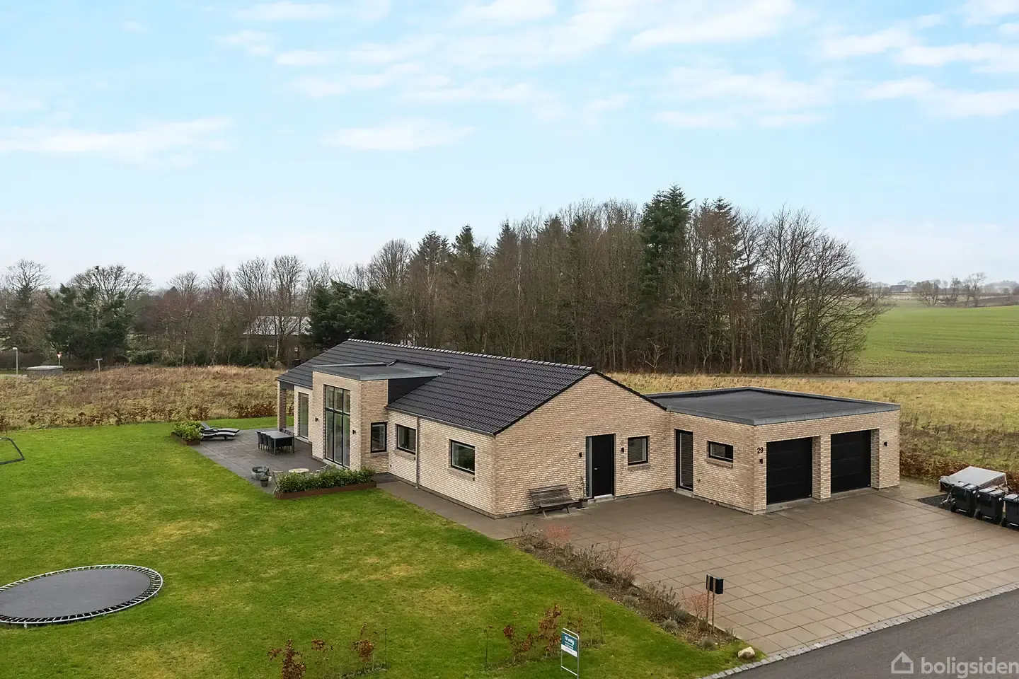 På Bavnebjerg 29 i Østbirk finder du denne indbydende og velbyggede villa fra 2022, opført af Preben Jørgensen Huse. Ejendommen fremstår moderne og tidssvarende med fuldmurede vægge, gennemtænkte materialevalg og en planløsning, der er skabt til hverdagen for den moderne familie.Boligen rummer 165 m² bolig og suppleres af en stor, opvarmet garage på hele 55 m² med god plads til både bil, opbevaring og hobbyformål.Indretningen er veludnyttet og opdelt i en klar børne- og forældreafdeling. Huset b