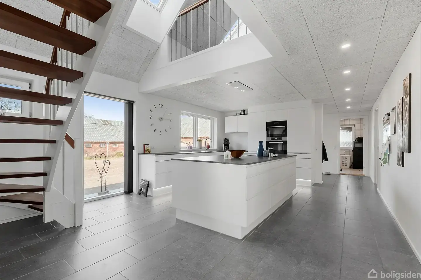 Åbent hus med tilmeldingskrav 2/2 - klik på billede - Beliggende i rolige omgivelser omgivet af åbne marker og egne jorder, tilbyder denne ejendom en unik mulighed for at bo i harmoni med naturen i et flot renoveret hus. Udenfor er der udbygningerne, som blandt skaber muligheden for udlejning til opbevaring. Boligen er udført af erfarne fagfolk. Huset byder blandt andet på solceller, gulvvarme, gode værelser, opdateret el og rør. Boligen er indflytningsklar og skaber en atmosfære af komfort i vedligeholdelsesfrie materialer. Ejendommen ligger i landlige og ugenerede omgivelser med blot 3 minutters kørsel til Stoholm, en nærliggende by, der opfylder alle dine daglige behov. Her finder du dagligvarebutikker, skoler, lægehus, tandlæge og apotek. Skolebussen stopper ved ejendommen, hvilket gør det nemt for børnene at komme til skole. Derudover er der et rigt kulturliv og diverse fritidsaktiviteter i nærheden. Boligen byder velkommen med et praktisk bryggers, der rummer rigelig plads til garderobe og fodtøj. Her finder du også vaskemuligheder og integreret skabsplads. Det store og moderne køkken-alrum udgør hjertet af hjemmet, hvor familien kan samles til hygge og sjov. Stuen med idyllisk udsigt over haven og markerne skaber et indbydende rum, der forlænger sig fra alrummet. I stueplan er der et badeværelse, et værelse og et soveværelse med direkte adgang til terrassen. Fra alrummet er der flot trappe, som leder til husets 1. sal. Her er der lavet en stor flot åbning, som giver et skønt lysindfald. Reposset fungerer som fordelingsgang til 3 værelser og stort badeværelse. Det ene værelse kan nemt laves til 2 værelser. Der er desuden indlagt fibernet i ejendommen og kloakken er separeret i regnvand og spildevand. Denne ejendom tilbyder en perfekt kombination af landlig idyl og bekvemmelighed, da der er under et kvarters kørsel til Skive og omkring en halv time til Viborg. Det er det ideelle valg for dem, der ønsker at bo på landet og samtidig være tæt på alle nødvendige faciliteter. Tag det næste skridt og oplev denne charmerende bolig – kontakt os for en fremvisning.