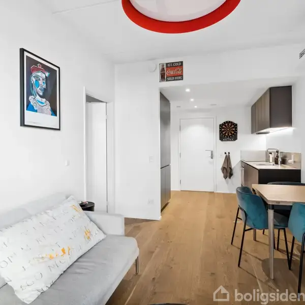 Velkommen til denne flotte og velindrettede 2-værelses lejlighed, beliggende i det eftertragtede og ikoniske Nicolinehus.Lejligheden byder på moderne rammer og en gennemtænkt planløsning, der udnytter kvadratmeterne optimalt.Boligens værelse er af god størrelse og fremstår lyst og indbydende. Herfra er der direkte udgang til en fin altan, hvor du kan nyde udsigten til den hyggelige og rolige gårdhave – et perfekt sted til morgenkaffen eller afslapning efter en lang dag.Køkken-alrummet er lejligh