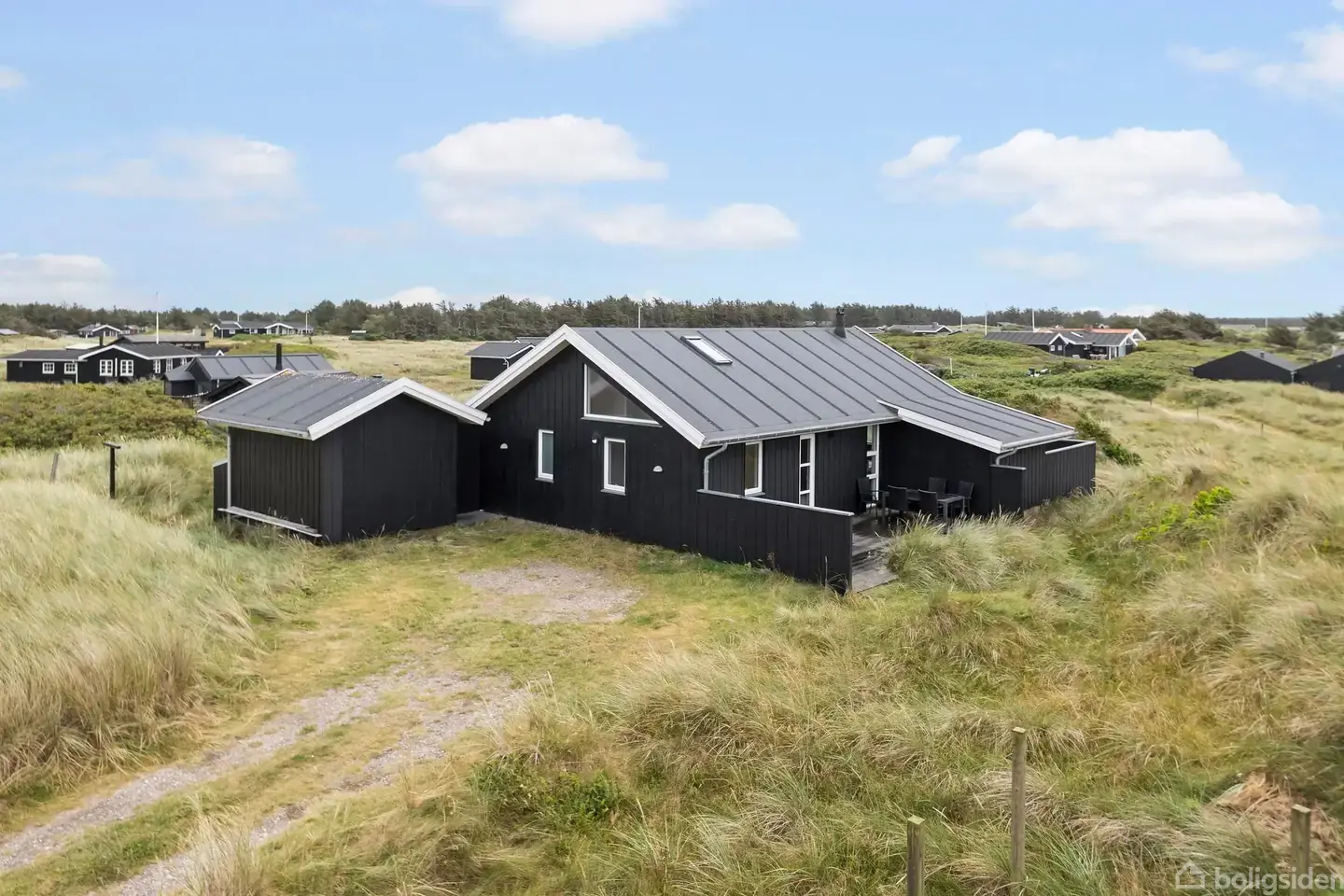 Dette skønne sommerhus fra 2012 tilbyder en enestående mulighed for at nyde de smukke omgivelser ved vandet og opleve naturens skønhed på nært hold. Beliggende på en lejegrund i Johannes Klit, byder dette sommerhus på alt, hvad hjertet begærer for en afslappende og komfortabel ferieoplevelse. Dette sommerhus byder velkommen med et moderne og lyst køkken-alrum, der fungerer som hjertet i huset. Køkkenet er veludstyret med moderne apparater og har rigelig plads til madlavning og socialt samvær. Den hyggelige brændeovn i alrummet skaber den perfekte atmosfære til afslapning og hygge på kølige aftener. Med tre rummelige værelser og en ekstra hems er der rigeligt med plads til familie og venner. Det moderne badeværelse er funktionelt og stilfuldt indrettet og er udstyret med alle de nødvendige faciliteter. En varmepumpe fungerer som primær varmekilde i huset og sikrer en behagelig temperatur året rundt. Men det er udenfor, at dette sommerhus virkelig skiller sig ud. De fantastiske terrasseområder giver dig mulighed for at nyde solen fra morgen til aften, grille lækre måltider eller bare slappe af med en god bog. Den imponerende naturgrund omgiver dig med skønhed og ro, og det er nemt at forestille sig at tilbringe timer med at udforske det omkringliggende naturlandskab. En ekstra bonus er det rummelige skur, der giver plads til alt, hvad sommerhuslivet har af behov, herunder opbevaring af havemøbler, grillredskaber, cykler og meget mere. Selvom dette sommerhus ligger på en lejegrund i Johannes Klit, er det ikke til at overse den fantastiske beliggenhed tæt på vandet, der giver dig nem adgang til stranden og muligheden for at nyde frisk havluft og lyden af bølgerne. Dette sommerhus er den perfekte ramme om en ferieoplevelse i naturskønne omgivelser, hvor komfort og æstetik går hånd i hånd. Tag kontakt i dag for at arrangere en fremvisning og oplev selv alt, hvad dette sommerhus har at byde på. Fritidshuset er beliggende på lejet grund med en lejekontrakt der løber uendeligt - dog har udlejer 30 års opsigelse. Beliggende på lejet grund med fortløbende lejekontrakt på 30 år