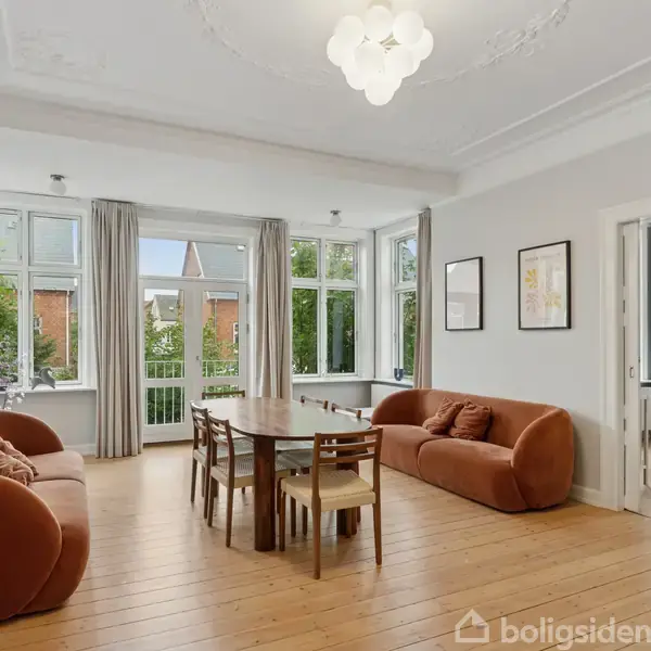 Herskabslejlighed med 5 værelser og smuk stuk På Biens Allé på Amager ligger der en præsentabel ejendom, som kan dateres tilbage til 1913. Netop her, nærmere bestemt i stueplan, udbydes nu denne femværelses med egen terrasse. Med en loftshøjde på cirka tre meter er boligen lidt af et unikum for området, og det hører også til sjældenhederne at se et hjem med så smukke stukdekorationer. Planløsningen inkluderer hele tre stuer en suite, og hertil kommer to sammenhængende værelser. De mange gode r