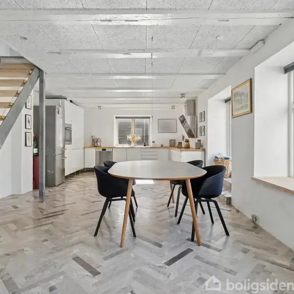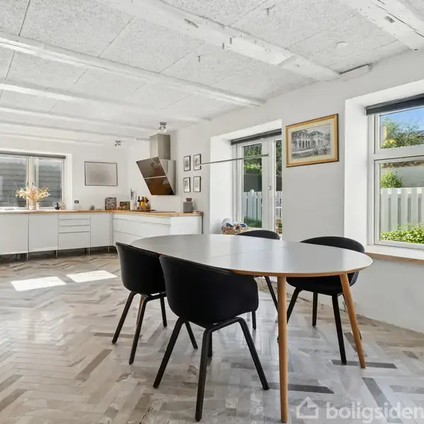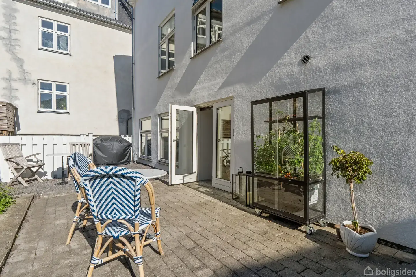 Denne charmerende bolig med ejerlejlighedsstatus udgør et helt særligt hjem – et baghus fra 1908, der forener historisk karakter med moderne komfort. Boligen rummer 153 veludnyttede etagemeter fordelt på tre etager og byder på en gennemtænkt planløsning, som både fungerer til det daglige familieliv og hyggelige stunder med gæster. Stueplanet åbner med et indbydende alrum, hvor køkken og spiseplads flyder naturligt sammen. Det stilrene køkken er rummeligt og indrettet med god bord- og skabsplads