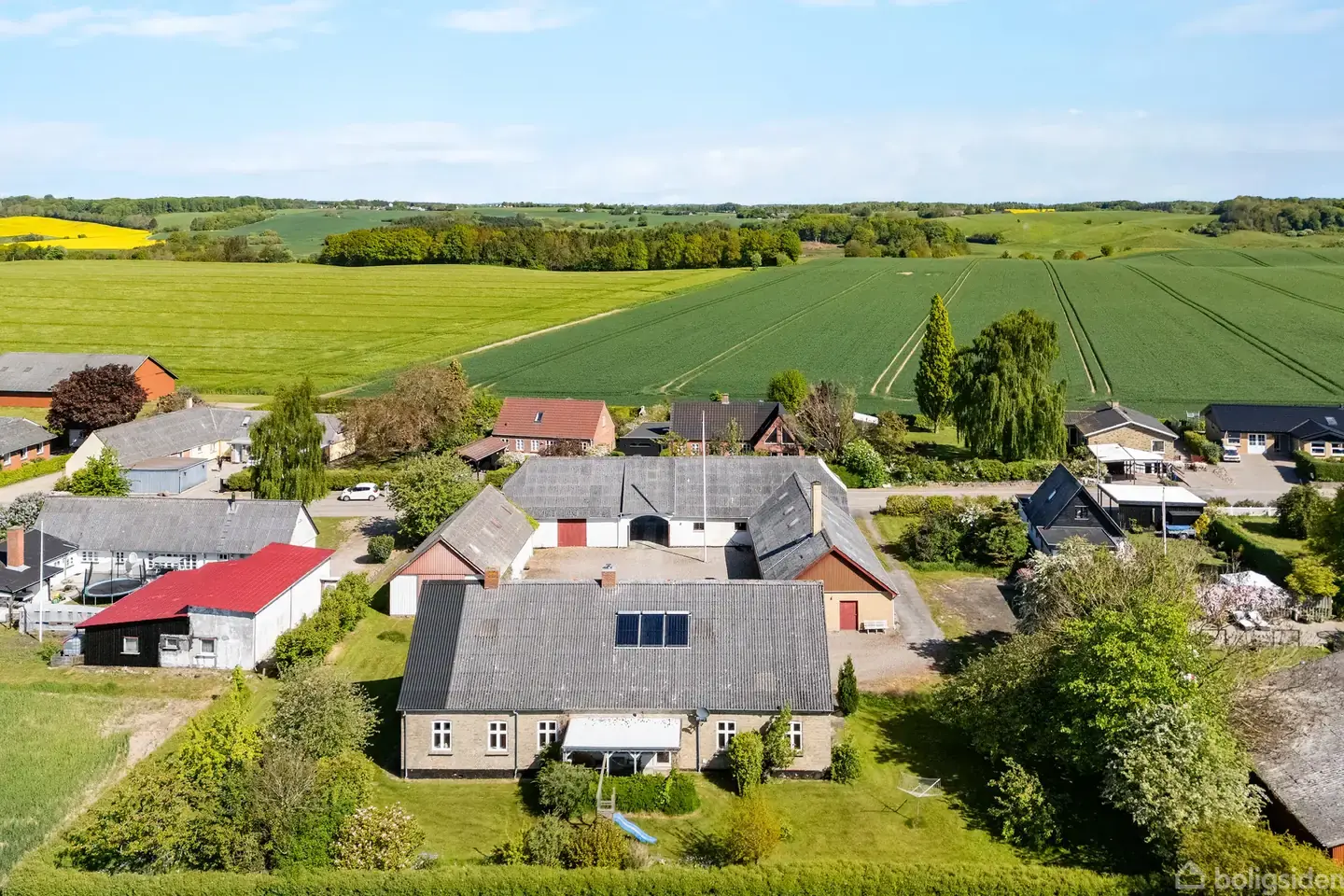 Højlund - 4 længet nedlagt ejendom ud til åbne marker og med byen på den anden side.Ejendommen er beliggende i et hyggeligt landsbymiljø ca. 5 km. syd Odder midtby hvor der er i nærområdet summer megen lokal aktivitet og bl.a. hyggelige gårdbutikker og restauranter (bl.a. Fru Møllers Mølleri), sportsfaciliteter, natur mv. I får gårdfornemmelsen, når man kører gennem vognporten ind til gårdspladsen, hvor stuehuset fremkommer samt de imponerende udebygninger. Ved første øjekast møder i en flot går
