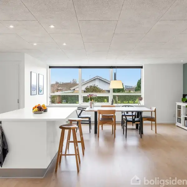 Velkommen til denne charmerende villa, hvor lys, rum og hverdagsliv går op i en højere enhed. Hjemmets hjerte er det dejlige køkkenalrum, hvor morgensolen strømmer ind gennem det store vinduesparti og skaber en helt særlig stemning. Her er plads til både store familiesammenkomster og de rolige stunder ved køkkenøen, hvor hverdagen får lov at folde sig ud.Stuen ligger i åben forbindelse med alrummet og giver en naturlig adgang til den store terrasse, der indbyder til grill, udeliv og afslapning,