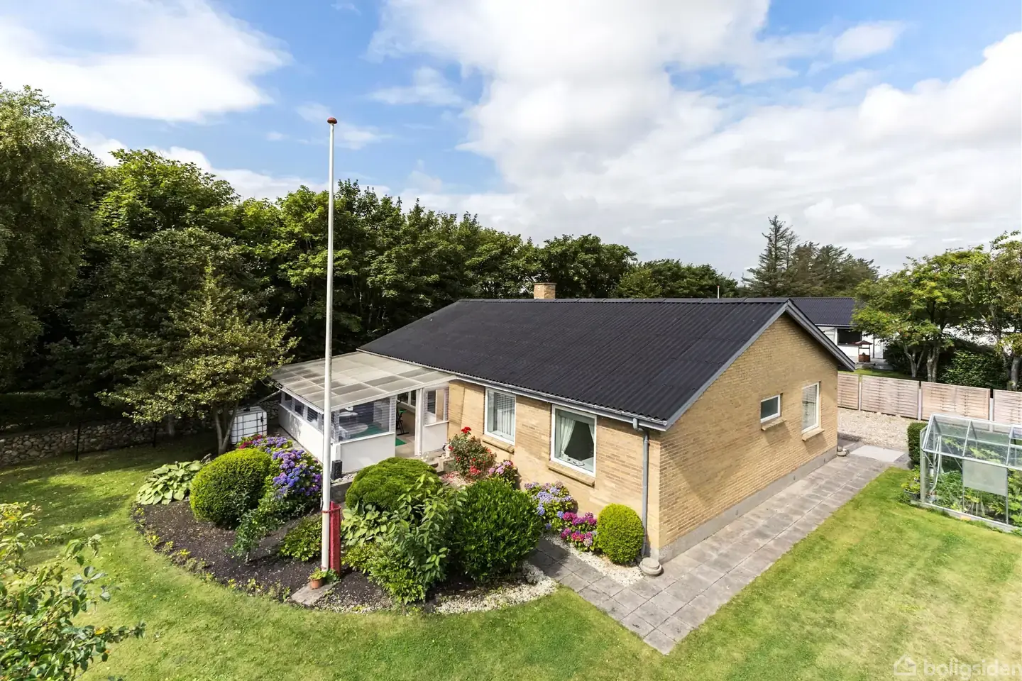 Seks kilometer fra Lemvig ligger landsbyen Lomborg, som tilbyder en tryg og rolig base for alle aldersgrupper. Alligevel giver beliggenheden ekstra god mening, hvis I er en lille børnefamilie på udkig efter hus og have, for med en familievenlig indretning og nærmeste daginstitution lige ved hånden er rammerne mere end almindeligt gode. Villaen fra 1972 er ovenikøbet løbende opdateret og byder på en lys indretning. Villaen har hjemme for enden af en lukket vej, og da I blandt andet finder børnehavens legeplads til den ene side og et friareal til den anden, har I blot en enkelt direkte nabo. Med sin sydvendte orientering er haven garanteret solrig, og I får en fin variation af buske, træer og bede til at sætte kulør på udeområdet. Desuden er haven ugeneret, og den private følelse forstærkes på jeres lukkede terrasse, som er et godt supplement på de ustadige dage. I bunden af indkørslen finder I dertil en bred carport med tilhørende skur. Som bolig betragtet er etplansvillaen et klassisk bekendtskab med gule murstensfacader og et lavt sadeltag. Ikke overraskende er indretningen velkendt, og I finder værelser i den ene ende af huset og opholdsrum i den anden. De 117 m² rummer i alt tre gode værelser, som har selskab af et pænt badeværelse, og i praktisk regi får I også et godt bryggers, der fremstår med samme lyse inventar som badeværelset. Heller ikke køkkenet kræver det store, for her giver de hvide elementer en lys stemning, og I har allerede plads til et spisebord. Ønsker I at sætte et præg på indretningen, er det værd at overveje at åbne op til den stuen ved siden af og skabe et mere sammenhængende opholdsmiljø. Faktisk er der mange gode grunde til at slå sig ned her i Lomborg. Byen er ganske vist lille, men sammen med de omkringliggende byer er der et godt samarbejde på tværs i foreningerne, hvilket giver børn og voksne et stort udvalg af aktivitetstilbud. I finder pasningsmuligheder i landsbyen, mens skolebørnene har skolebus til Ramme, som hører til de nærliggende nabobyer. Med cykelsti mellem landsbyerne kan større børn også sagtens gribe friheden og cykle selv. Naturskønne oplevelser i Klosterheden og ved Vesterhavet er der rigeligt af, mens I finder dagligvarebutikker og et levende handelsmiljø i Lemvig, som ligger cirka syv kilometer væk. Skal det gå lidt hurtigere, har I også en Min Købmand lige ved hånden i Ramme. Start med at kontakte os på 96 63 40 00 for at høre mere ved en fremvisning.