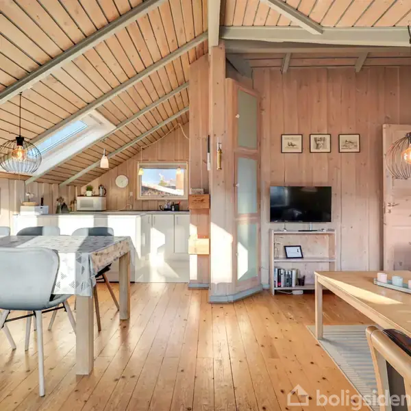 Her har vi et RIGTIGT sommerhus – et sommerhus, der emmer af hygge.Fra det sekund, man træder ind ad døren, kan man mærke, at roen og hyggen indfinder sig.Det er opført i træ og indvendigt med loft til kip, hvilket giver en dejlig rummelighed og en klassisk sommerhusstemning. I alt rummer huset 2 soverum.Sommerhuset indeholder:Entré/gang, 2 gode soverum, et pænt badeværelse med bruser samt et åbent og hyggeligt stue-/køkkenmiljø med udgang til en dejlig terrasse.Til ejendommen hører desuden et a