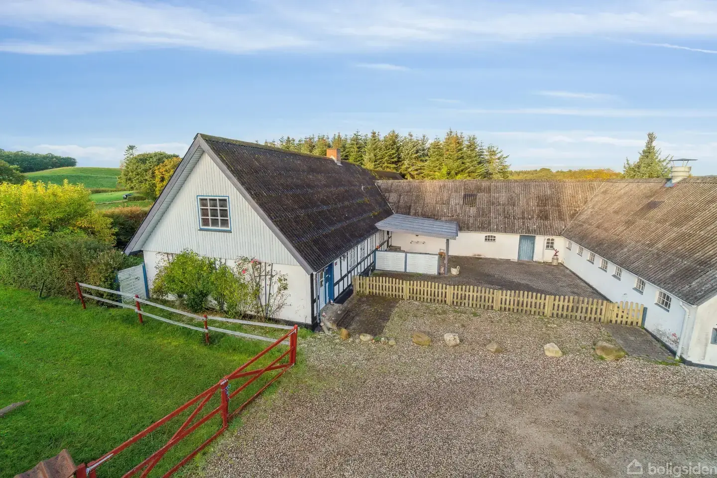 På en stor grund i den hyggelige landsby Løvskal inviteres I indenfor i denne dejlige villa. Her får I fortrinlige rammer om familielivet med en velindrettet planløsning og masser af plads. Ved ankomst mødes I af et stemningsfuldt hus fra 1890 med sort bindingsværk og fine blå detaljer. Huset opvarmes af et træpillefyr, der inden for de seneste år er blevet skiftet. Inden døre breder de 142 m2 sig over halvandet plan med gode værelser, to badeværelser, bryggers med vaskefaciliteter, en stue samt