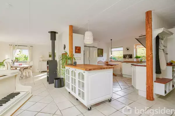 Yderst velholdt Panbo bjælkehus med fjernvarme og central beliggenhed i Hornsyld Velkommen til et charmerende hjem på Birkevej 7 i Hornsyld! Ved ankomst bliver du mødt af en smukt anlagt forhave, komplet med garage og praktisk plads til campingvogn. Et flisebelagt område og en sammenhængende gangsti omkring huset skaber et indbydende helhedsindtryk. Haven er omhyggeligt vedligeholdt og byder på en urtehave, frugttræer og flere hyggelige terrasser. Den store, overdækkede terrasse udvider boligen