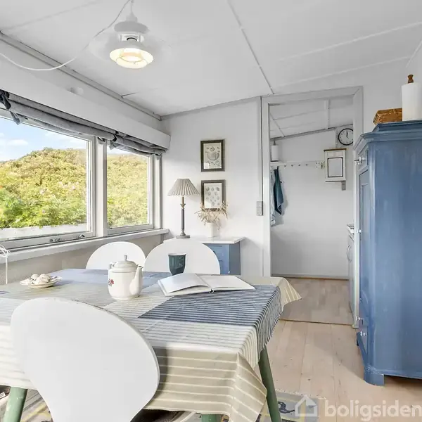 Velkommen til dette charmerende sommerhus, som ligger kun 117 meter fra den brede, gyldne sandstrand ved vestkysten. Her er der rig mulighed for at tage en kort spadseretur over klitten og nyde bølgerne, der ruller ind mod kysten. Huset ligger på lejet grund i Johannes Sørensens Klit. Opført i 1947, byder huset på 35 kvm hyggeligt boligareal plus 18 kvm udhus, hvilket skaber den perfekte ramme for afslapning og ferie. Indretningen præsenterer et sødt retrokøkken i bløde pastelfarver, som straks sætter en dejlig stemning. Fra køkkenet er der direkte adgang til den solrige gård, hvor aftensolen kan nydes med en god bog eller en kop kaffe. Køkkenet er i åben forbindelse med spisestuen, der prydes af et flot udsyn til klitlandskabet, hvor lys strømmer ind og giver rummet liv. Herfra ledes du videre til den hyggelige opholdsstue, som giver adgang til soveværelset. Fra opholdsstuen kan du også træde ud på den syd- og østvendte terrasse – et perfekt sted til morgenkaffen eller en afslappende stund i solen i løbet af dagen. Husets praktiske mellemgang fører til et stort værelse med egen udgang, hvilket giver gode muligheder for gæster eller som hobbyrum. Her finder du også badeværelset, der er udstyret med en fin bruseniche, toilet og et charmerende skabsarrangement med håndvask. Entréen giver desuden adgang til opmagasineringsrummet/depotet, hvor der er plads til alle dine feriegadgets. Huset opvarmes med el, så du kan nyde hyggen året rundt. Beliggenheden er alfa og omega for denne ejendom, og med sit intime og rå udtryk oser huset af varme og velvære. Her er rammen sat for mange mindeværdige sommerferier og skønne stunder i naturen. Velkommen hjem!