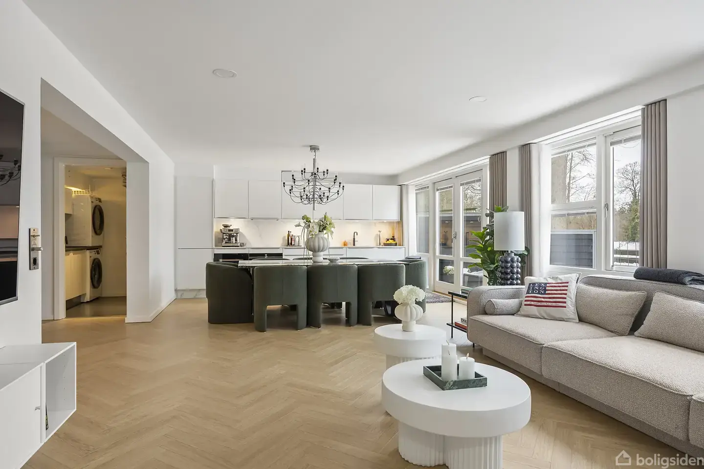 Eksklusiv stuelejlighed med terrasse mod Rude SkovEbberød ligger praktisk talt placeret i en lysning i Rude Skov, og naturen er altså en faktor, der definerer hverdagen for byens beboere. Alt imens har man børnehaver, skole og spændende fritidstilbud inden for kort cykelafstand, mens de rolige, lukkede vænger snor sig omkring hinanden og skaber et uforstyrret lokalmiljø, som stadig hænger sammen med en hverdag i Birkerød. Her strækker Biskop Svanes Vej sig fredfyldt med den ene markante ejendom