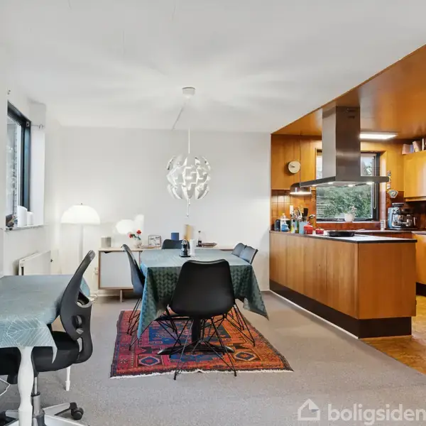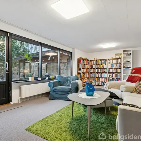 Charmerende etplansvilla med dejlig, lukket have  Lyder en gul murstensvilla fra 1968 med charmerende, originale detaljer, en helt ny luft-til-vand varmepumpe og gode naboer som noget for dig? Så skal du glæde dig til at gå på opdagelse i denne gemte oase, hvor du får lov at indrette dig i 115 m2, der blandt andet byder på et hyggeligt køkken-alrum i åben forbindelse til stuen. Om sommeren vil du nyde at slappe af i den skønne, lukkede have, der både har et rigt dyreliv og en delvist overdækket