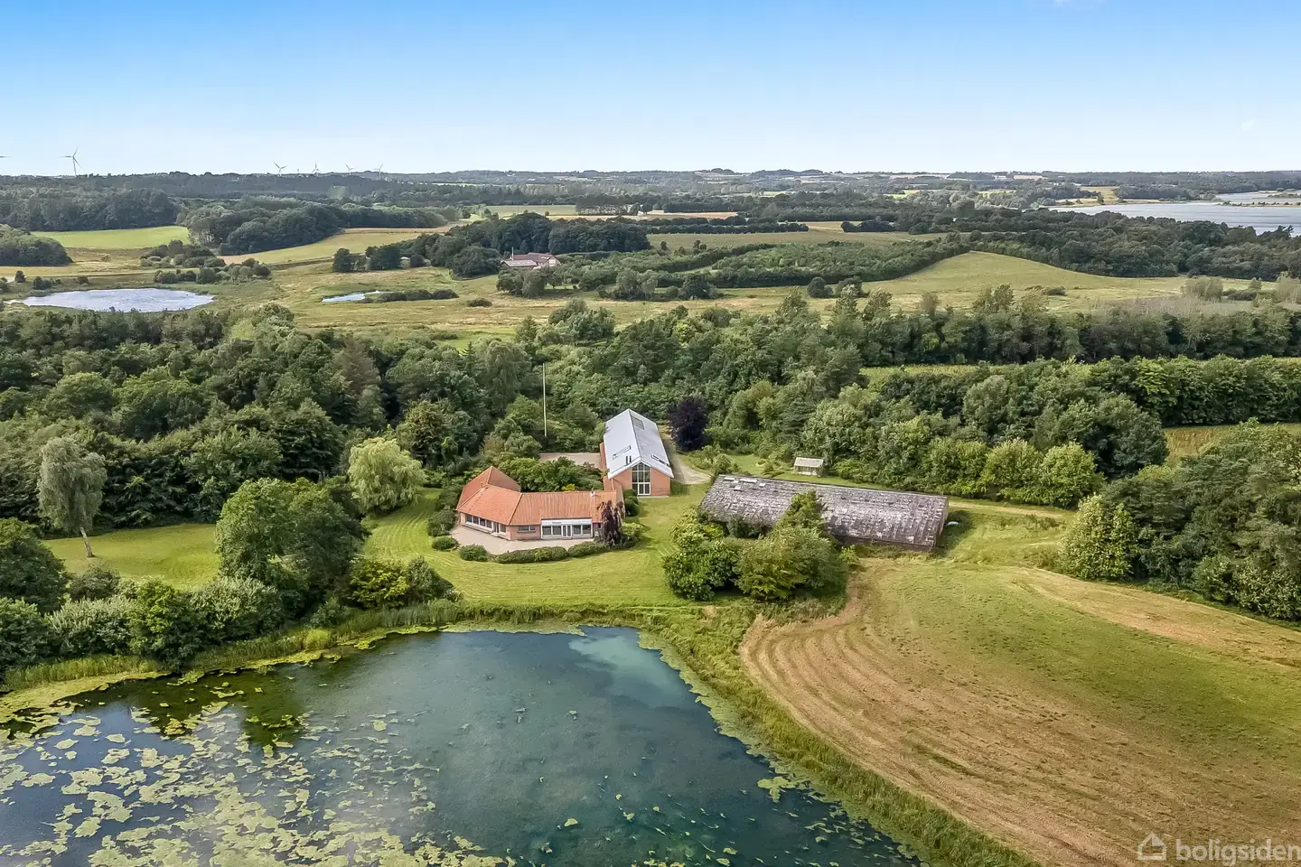 Drømmer du om en eksklusiv lystejendom, hvor jagt, natur og luksus går op i en højere enhed? Så skal du opleve Søndermølle – en unik ejendom på 7 ha beliggende midt i det smukke midtjyske landskab ved Haderup. Her bor du centralt mellem Skive, Holstebro, Herning og Viborg – og med hurtig adgang til motorvejen mod Mejrup-Holstebro.På en helt uforstyrret placering midt på ejendommens egne jorder ligger det elegante, arkitekttegnede hovedhus på 296 m². Opført i 1998 i kompromisløs kvalitet og med u