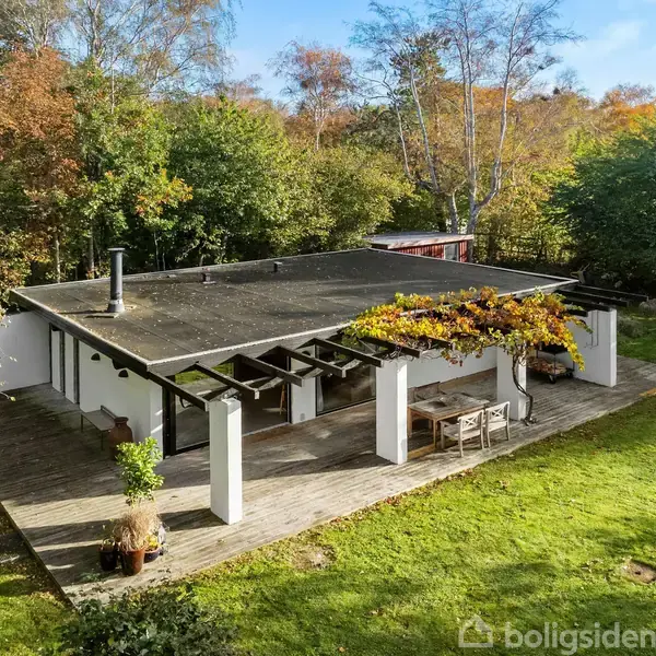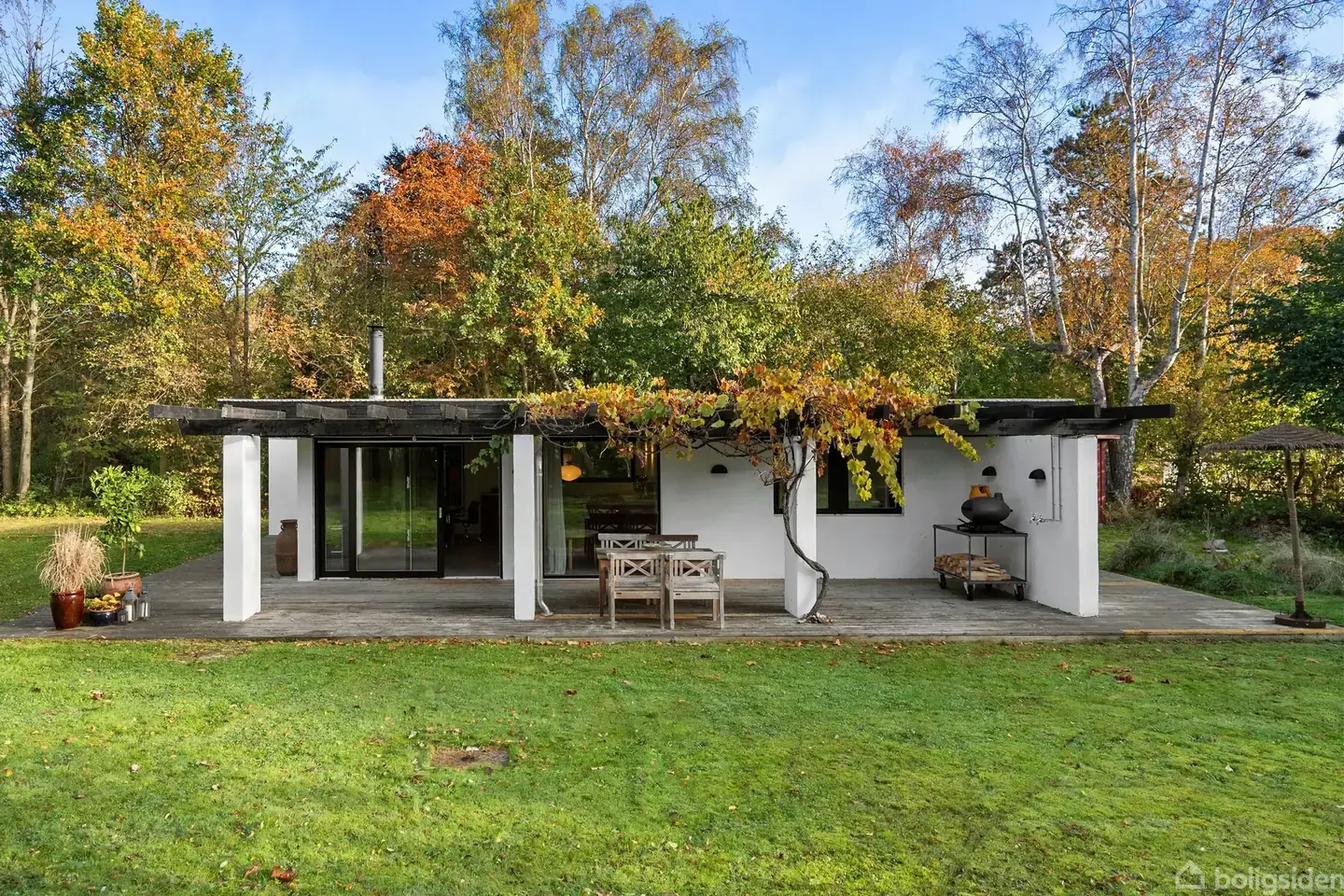 STILRENT FRITIDSHUS I SKARP ARKITEKTUR I FULDSTÆNDIG OPDATERET STAND – NYD FREDEN OG DEN SMUKKE NATUR PÅ ODDEN I DETTE SKØNNE HJEM…. Vi har fornøjelsen af at byde velkommen til Bjergkløverstien 4, beliggende i den lille eksklusive enklave ”Guldkysten”. Her, hvor himmel og hav smelter sammen i en uendelig horisont, finder du en sjælden perle af et sommerhus. Adgangen til området sker via en lille grusvej, hvor du allerede på vej til huset kan lade dig betage af det vidunderlige syn af Sejerøbugten. Dette STILRENE fritidshus er gennem de seneste år blevet fuldstændig renoveret og fremstår utroligt lækkert og moderne med gulvvarme over alt. Husets ejer er snedker – og garderobeløsninger samt senge er håndbyggede af fineret egetræ – alt sammen lavet med den største respekt for husets oprindelige arkitektur. Vi finder huset på en 1.479 kvm stor og solrig grund med masse af frugttræer og vinranker over terrassen. På en solskinsdag får man helt sydlandske vibes. Her er få minutters gang til stranden og badebroen – en perfekt invitation til en svalende morgendukkert i det klare, salte hav. Den skønne terrasse er perfekt placeret, så du altid kan finde sol, skygge eller læ for vinden. Her er fin plads til udekøkkenet og her er selvfølgelig installeret et flot udebad. Indenfor fortryller huset med sine lækre betongulve og lyset der vælter ind af de store vinduespartier. Den skarpe stil med de hvide pudsede vægge og hvide trælofter rammes ind af de sorte vinduesrammer og det sortmalede træværk. Opvarmningen sker via en moderne varmepumpe og brændeovn. Vi byder indenfor i husets entré, hvorfra der er adgang det flotte badeværelse. Badeværelset er af nyere dato, men holdt i den klassiske stil med hvide fliser og terrazzofliser på gulvet. Huset rummer hele tre soveværelser, så her er god plads til hele familien. I den store stue mødes du af et enestående lysindfald og virkelig god plads. Stuen er i åben forbindelse med det lækreste håndbyggede køkken i fineret kirsebærtræ med rustfri stålbordplade og alle moderne bekvemmeligheder. De store vinduer lader lyset danse gennem rummet og bringer naturen helt ind i hjemmet. Fra stuen kan du træde direkte ud på den store terrasse og her kan du nyde morgenkaffen i solopgangens blide skær eller afslutte dagen med et glas vin, mens solen forsvinder i horisonten og maler himlen i de smukkeste nuancer. Drømmer du om et sommerhus i Odsherred, hvor naturen og lyset er ganske unikt? Vil du vågne til synet af rådyr, der forsigtigt kigger ind ad vinduet, eller lytte til pindsvinet, der pusler i skumringen, mens du sidder på terrassen og nyder de lyse sommernætter? Forestil dig at tilberede et lækkert måltid over bålet på stranden – måske en friskfanget fisk, hentet direkte fra fiskerne i Havnebyen, ledsaget af friske grøntsager fra en af områdets økologiske gårdbutikker og nybagt brød fra den lokale bager. En kort cykel- eller køretur bringer dig til den charmerende Havnebyen, hvor du kan opleve den livlige havn