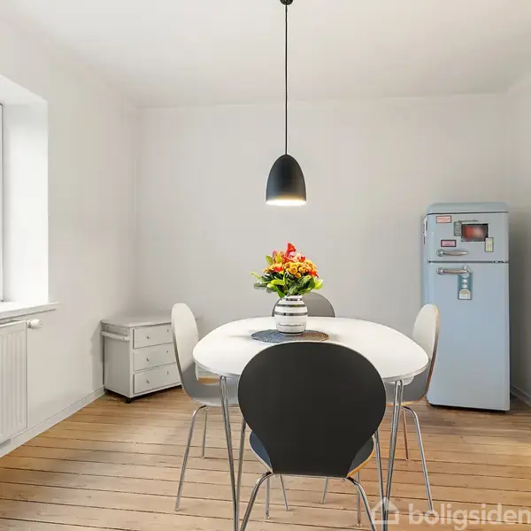 Velkommen til Bjerning Kirkevej 9 – en charmerende og utrolig velindrettet bolig, hvor ro, udsigt og funktionalitet går op i en højere enhed. Selvom boligen rummer 90 m², føles den både rummelig og gennemtænkt, og hver kvadratmeter er udnyttet optimalt. Du træder ind i et praktisk bryggers/entré, hvorfra der er adgang til ejendommens flotte badeværelse og videre til det nyere køkken. Køkkenet ligger i direkte forbindelse med de to stuer en suite, som skaber et åbent og fleksibelt opholdsareal.