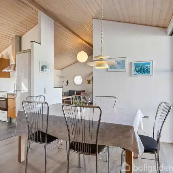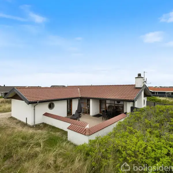 I 2. klitrække ligger dette indbydende sommerhus, som danner ideelle rammer om ferier og fridage for hele familien. Fra huset og udearealerne opleves en smuk udsigt til det omkringliggende klitlandskab, hvor naturen sætter dagsordenen. Den særlige ro og autentiske vestkyststemning mærkes med det samme – en atmosfære, der indbyder til nærvær, afslapning og ægte sommerhusliv. Sommerhuset er indrettet med en lys og hyggelig opholdsstue i åben forbindelse med køkken og spiseafdeling, hvilket skaber et naturligt samlingspunkt for familien. Brændeovnen bidrager til den klassiske sommerhusstemning, og køkkenet er praktisk indrettet i forlængelse af spisepladsen. De tre soveværelser er fornuftigt fordelt med to værelser med dobbeltsenge og ét værelse med to enkeltsenge. Badeværelset fremstår lyst og funktionelt med gulvvarme, vaskesøjle samt både spa og sauna. Huset er beliggende på en skøn naturgrund med god plads til både leg og afslapning. Fra stuen er der direkte udgang til en stor, lukket og delvist overdækket sydvestvendt terrasse, hvor udelivet med både solbadning, grillhygge og leg. For de mindste er der gynge og sandkasse på grunden. Sommerhuset er tilmeldt udlejning – forhør nærmere omkring. Beliggenheden i Bjerregård er populær, da den giver nem adgang til strand og klitlandskab, som indbyder til mange dejlige gå- og cykelture. Samtidig er der kun en kort køretur til Hvide Sande med butikker, restauranter og havnemiljø, som er et besøg værd uanset årstid.