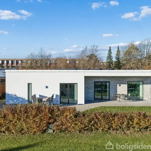 På denne adresse venter et hjem, hvor moderne arkitektur og gennemførte detaljer går op i en højere enhed. Boligen står med et flot og nutidigt udtryk, hvor de kombinerede facadesten og pudsede Fermacell-plader skaber et elegant spil – perfekt fuldendt af de hvide træ/plast-vinduer, der giver huset et let og eksklusivt look. Indenfor udfolder de 128 m² sig med en gennemtænkt planløsning, der passer både til familien, seniorparret eller jer, der ønsker en fleksibel bolig uden spildplads. Entréen