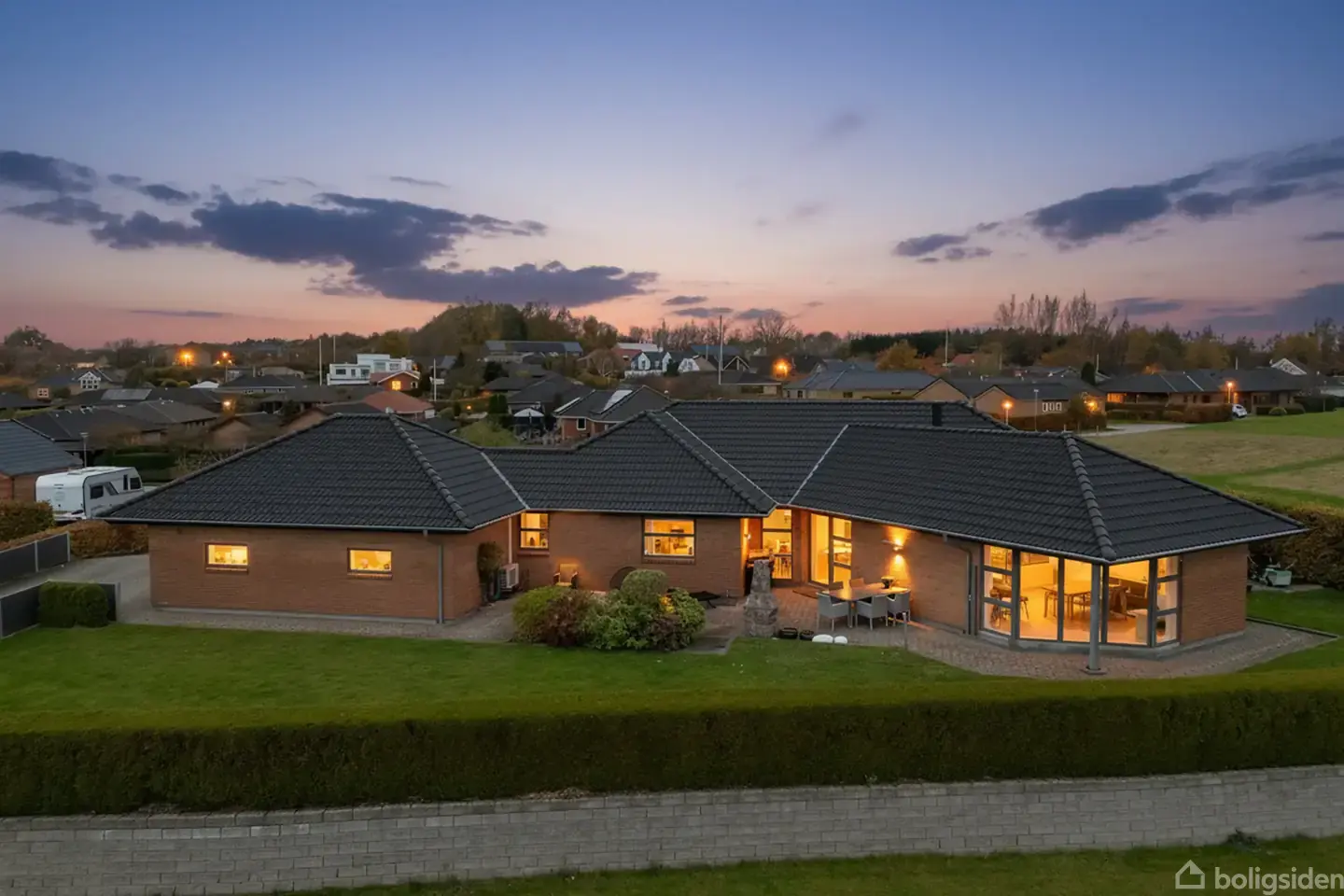 home har fornøjelsen af at udbyde denne indbydende og velholdte villa på Blåbærhaven 11 i Lystrup hvor I får 165 veldisponerede kvadratmeter i et plan med fokus på komfort lys og funktionalitet. Boligen ligger attraktivt i et stille og børnevenligt kvarter og har en unik placering med flot udsigt ud over bugten som kan nydes fra både opholdsrum og have.Denne fuldmurede villa fremstår præsentabel med sort tegltag og byder på et skønt uderum med velanlagt have og flere solrige terrassemiljøer hvor