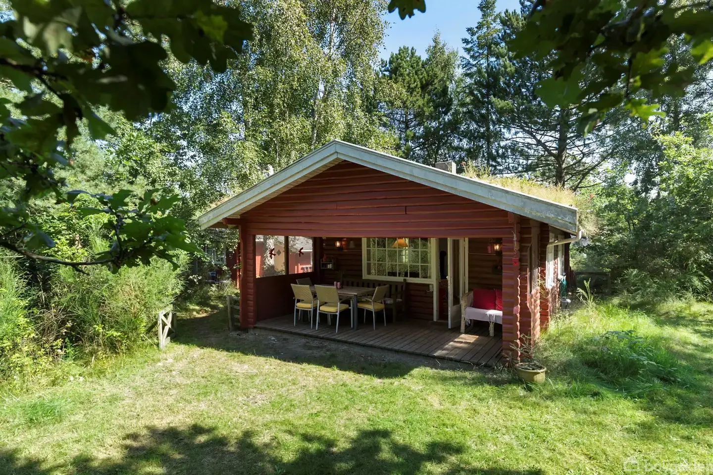 Charmerende norsk bjælkehytte på stor naturgrund – med ekstra grund og skønt anneks På en skøn, ugeneret naturgrund finder du denne stemningsfulde norske bjælkehytte – et ægte fristed i hjertet af Mols. Hytten byder på overdækket indgangsparti, hyggeligt soveværelse, køjeværelse samt toilet. Stuen er en sand perle med brændeovn og direkte adgang til en overdækket terrasse, perfekt til aftensolen og lange sommeraftener. Køkkenet er i åben forbindelse med stuen og bidrager til den hyggelige atmosfære. Grunden er en oplevelse i sig selv – med hyggelige siddepladser, små oaser, bålplads og rig mulighed for at nyde stilheden, dyrelivet og den smukke natur. Som en ekstra bonus medfølger nabogrunden, så du får masser af plads og mulighed for at forme dit eget paradis – eller måske selv vælge din nabo. På ejendommen findes desuden et 22 m² anneks, der er indrettet med stue, soveværelse og badeværelse med bruseniche – ideelt til gæster, teenagebørn eller som kreativt frirum. Der er også et praktisk udhus med god opbevaringsplads. Et sjældent udbudt sted, hvor naturen, roen og livet i det fri får lov at fylde. Kun 2 km til Femmøller Strand med badevand, iskiosk, specialbutikker og gode spisesteder – og blot 8 km til den charmerende købstad Ebeltoft. Området indbyder til både gå- og cykelture i det smukke, bakkede landskab. Fiberbredbånd er allerede indlagt – så du kan kombinere naturens ro med moderne bekvemmeligheder.