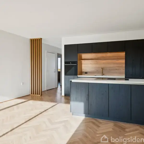 Moderne inventar fra øverste hylde. Det er ikke svært at forestille sig, hvilken fornøjelse det vil være at flytte ind her. Lækre materialer og stilrent design danner nemlig nogle rammer om tilværelsen, som de fleste vil kunne se sig i – og så ovenikøbet badet i lyset fra store vinduespartier, der er vendt mod en åben himmel over Hasseris. Roligt, rart og ikke mindst centralt. Adressen placerer sig centralt i Hasseris, tæt på Mølleparken, Aalborg Zoo og de lækre, grønne områder omkring. Deraf er