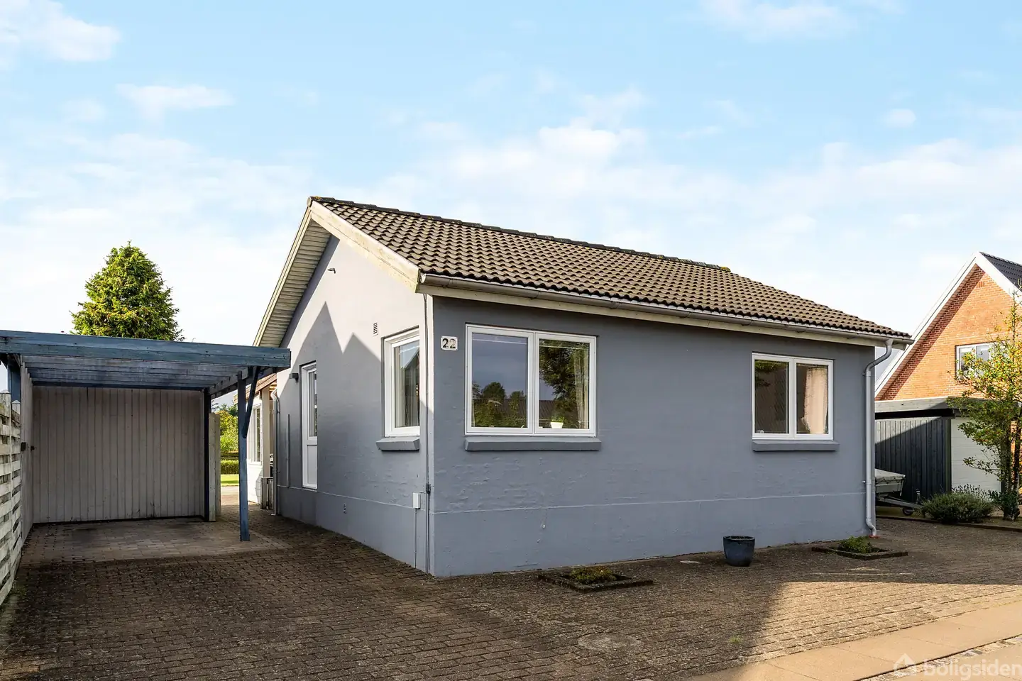 Når du kommer indenfor i villaen på Blichers Vej 22 i Egeris fornemmer du straks en varm og imødekommende atmosfære, der præger både boligen og de hyggelige omgivelser. Villaen er placeret på en rolig villavej, hvor det trygge naboskab og det nære fællesskab giver området sin velkendte, behagelige stemning. Her bor du centralt i Egeris og er tæt på hverdagens fornødenheder, mens natur og byliv forenes i din dagligdag.Entréen byder velkommen med god plads og fører direkte til boligens naturlige s