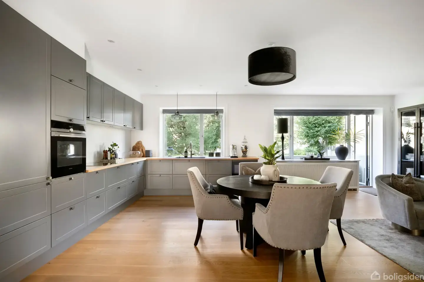 Stilfuld og totalrenoveret lejlighed med altan, walk-in og grønne omgivelserDer er hjem, man bare kan mærke med det samme – hvor æstetik, funktionalitet og atmosfære smelter sammen til en helhed, der føles naturlig og velafbalanceret. Denne bolig er netop sådan et sted. Bag de klassiske rammer gemmer sig en totalrenoveret lejlighed fra 2017, hvor alt er gennemtænkt, og hvor man får fornemmelsen af en ny bolig pakket ind i en charmerende, ældre arkitektur.Lejlighedens hjerte er det store opholdsr