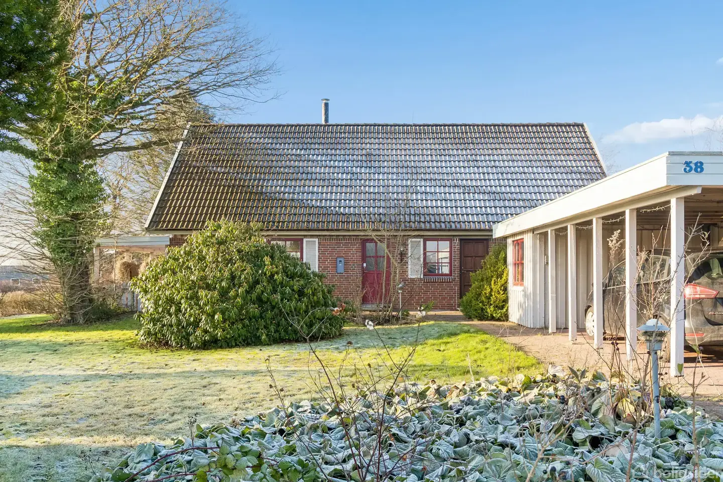 Velkommen til Blomsterhaven 38 der præsenterer sig som en solid og charmerende rødstensvilla, der kombinerer klassiske dyder med en gennemtænkt planløsning og en fantastisk udsigt.Boligen byder på en indbydende entré, der fungerer som boligens knudepunkt med adgang til både stueplan og førstesal. Herfra træder man ind i det store, åbne alrum og stue, hvor de brede vinduespartier sikrer et behageligt lysindfald og en dejlig rumfornemmelse. I åben forbindelse med alrummet findes det velindrettede