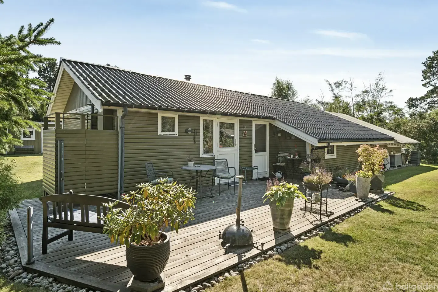 Charmerende sommerhus på skøn, lys grund nær vandet