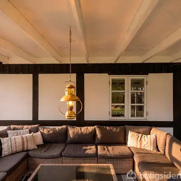 BODERNE – IDYL, RO OG DISKRET LUKSUS Boderne har sin egen rytme. Et landskab med åbne marker, klitter og en strand, der hører til blandt de mest eftertragtede på øen. Midt i dette område ligger et lille tidligere landsted, som gennem årene er forvandlet til et moderne sommerhus – uden at miste sin sjæl. Her mødes symmetri, enkelhed og funktion i en sjældent vellykket helhed. Den stenbelagte gårdsplads skaber en naturlig ankomst, og huset ligger diskret afskærmet af grønt og hegn, så man ankommer til noget, der føles både privat og harmonisk. Hovedhuset – klassisk form, nutidig kvalitet Huset er de seneste år renoveret i en kvalitet, der er til at mærke. Overflader, farver og løsninger er holdt i et roligt, nordisk udtryk – et sommerhus, der ikke forsøger at imponere, men i stedet tilbyder balance og varme og indbyder til stjernestunder. Lyset og proportionerne gør huset intuitivt at være i; det er gennemarbejdet, men ikke overgjort. Stueplan rummer landligt køkken med åben vue til spiseplads med brændeovn og stue med direkte udgang til en af de i alt tre træterrasser. Her er to soveværelser, badeværelse og et funktionelt bryggers. På første sal ligger et stort disponibelt areal, hvor der let kan etableres yderligere to værelser, hvis man ønsker det. I dag er her lege- og krearum, soveværelse, garderoberum og toilet. Sidebygningerne – en selvstændig oase Sidebygningerne udvider mulighederne markant. I den ene, tidligere stald, ligger en spa-afdeling med sauna, brus og karbad, et ekstra toilet og et disponibelt rum, og på første sal et køkken-alrum og soveværelse. Det fungerer nærmest som et lille sommerhus i sig selv – ideelt til gæster, generationer eller som et stille arbejdsværelse. I den anden sidebygning er der i dag et bordtennisbord og dart samt en brændeovn, der gør rummet attraktivt som aktivitetsrum året rundt. Uderum med nærvær og anvendelighed Den overdækkede terrasse og den grønne have giver mulighed for at leve lige så meget udenfor som inde. Her er plads til leg, ro, fællesskab og de lange aftener ved bålet, som har sin egen rolle i sommerlivet. Afstanden til stranden er få minutter. Boderne er et af de steder, hvor man mærker naturens skiften meget direkte – stille morgener, klare aftener og alt derimellem. Det, dette sted kan, er sjældent: at være generøst uden at være stort.At være gennemført uden at være prætentiøst.At være et sommerhus, der inviterer både familie og gæster ind – og samtidig giver plads til ro.